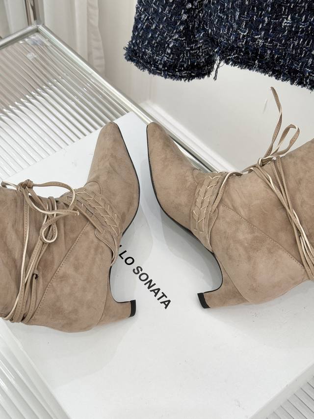 Factory Price: Cello Sonata 25Wf New Arrival Braided Strap Retro Kitten Heel Boots. When the woven texture meets the retro heeled boot shape, these ankle boots become an elegant symbol of fall and winter. More than just a shoe, they embody a vintage aesthetic that can be worn on the feet, instantly elevating everyday outfits. Handmade woven straps wrap around the shoe, each texture exuding exquisite craftsmanship. While retaining a relaxed feel, the crisscross design accentuates the ankle. The signature heeled collar drapes naturally, creating a relaxed, retro feel that gently hugs the calf, concealing minor imperfections while adding a touch of French romance. The moderately high kitten heel is the finishing touch, subtly lengthening the legs. Perfect for everyday commutes or weekend shopping.