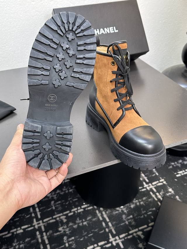 style: Chanel's classic Martin boot silhouette, sleek and stylish.