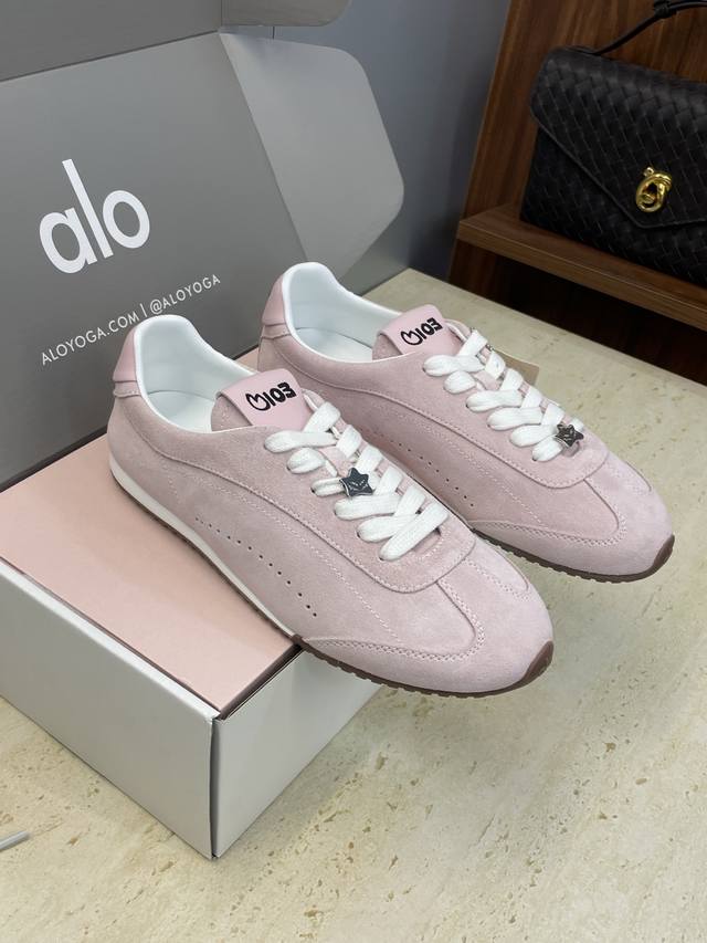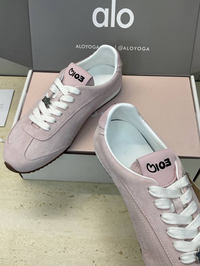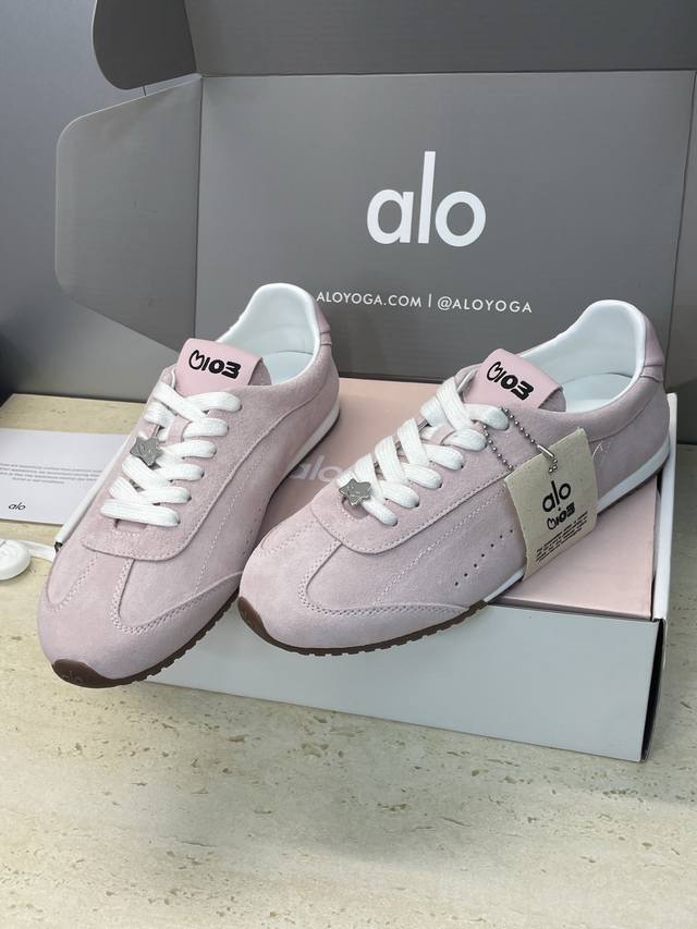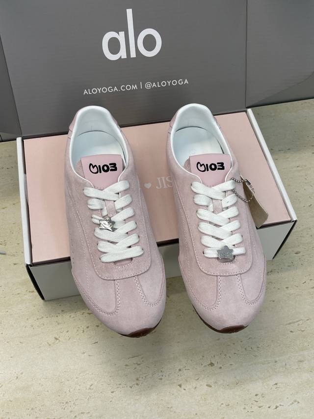 Factory price Ddd Dongguan-made Alo X Jisoo 2025 Autumn/Winter Collaboration New High-End Series Sunset Sneaker Lace-up German Training Casual Sports Shoes Celebrity Same Style Letter Logo Hardware Buckle Round Toe Color Block Forrest Gump Running Shoes Ddd Material: Imported suede upper + water-dyed sheepskin lining + original mold TPU outsole Ddd Size: Women's sizes 35-40 40 Customized, no returns or exchanges DDD Ddd
