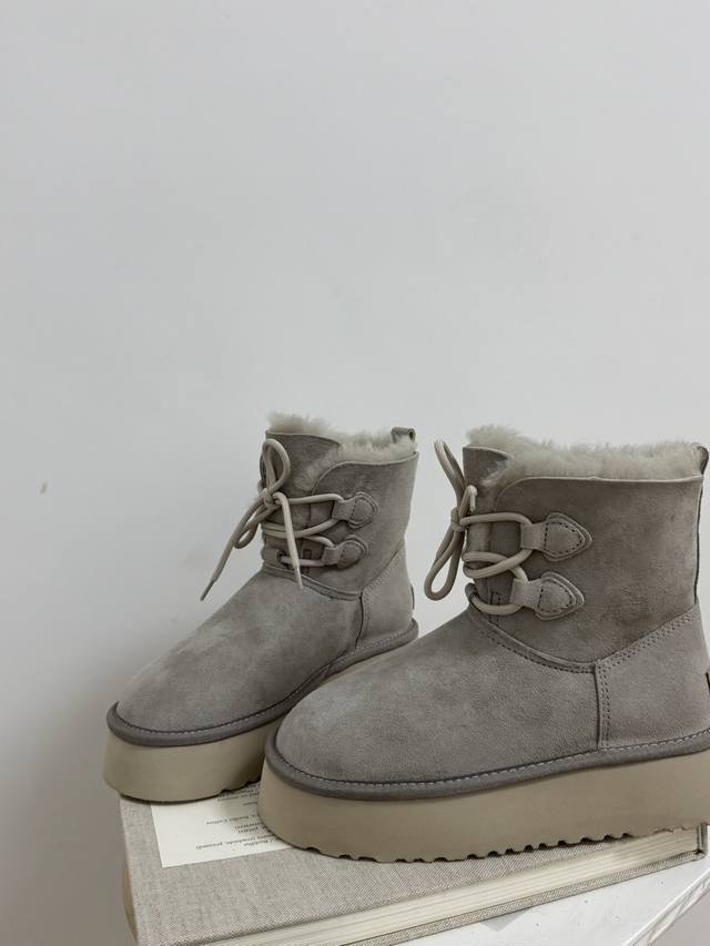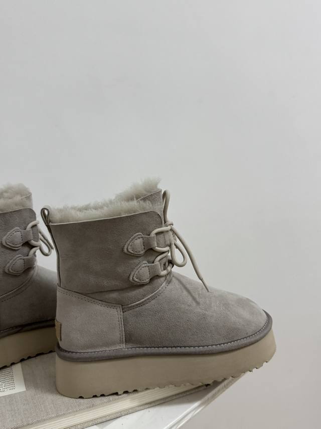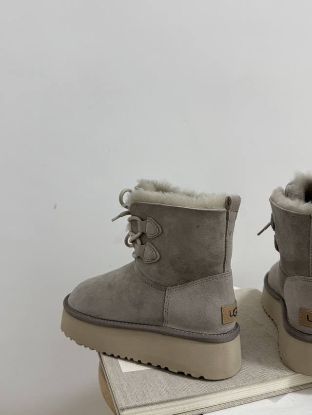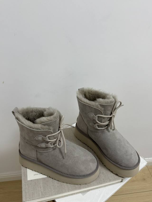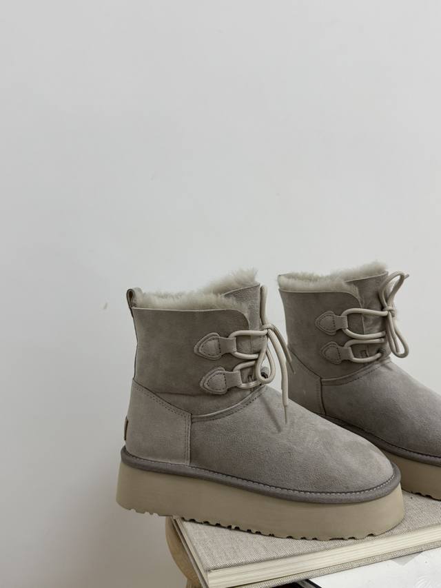 Factory price! How can anyone resist a pair of warm, beautiful, and leg-lengthening Ugg snow boots?! These thick-soled lace-up boots are absolutely gorgeous! The suede material exudes luxury, while the fluffy wool collar is both sweet and adorable, perfectly capturing a sweet and cool style. The thick sole subtly adds height and makes your legs look slimmer! Most importantly, they're incredibly warm! The soft wool lining ensures your feet won't get cold even in the harsh winters of Northeast China. Whether paired with jeans, a dress, or leggings, they look amazing, making you stand out from the crowd and turning heads wherever you go. This winter, who isn't a Ugg goddess?!