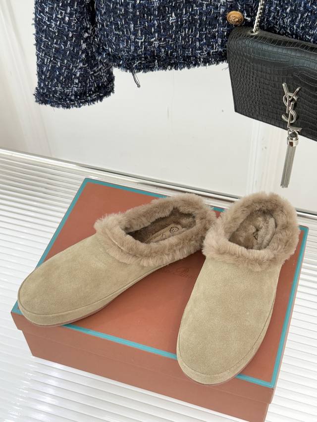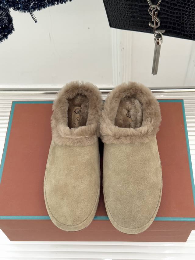 Factory Price Loro Piana Lp70Wf New Couple Retro Wool Casual Slippers When Italian laziness meets retro style, these slippers become an elegant statement for everyday life. The lining is made of fine wool, as soft and comfortable as a cloud. The gentle collision of retro colors retains the brand's consistent understated luxury while subtly revealing the unspoken matching thoughts between couples. The heelless design frees your feet from injury, and the perfectly shaped shoe conforms to your arch. From morning coffee to afternoon strolls, from a nap at home to a leisurely walk on the street, comfort and style go hand in hand. It's not an intentional couple's label, but a tacit understanding hidden in the details. It's his deep brown and her off-white, the warmth of wool and the retro flair, effortlessly filled with exquisiteness and harmony.