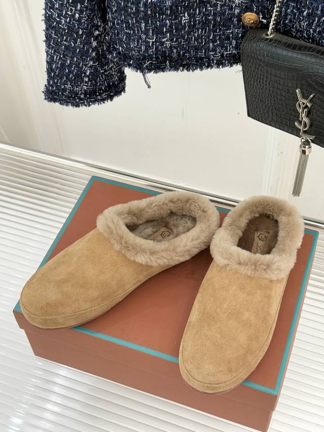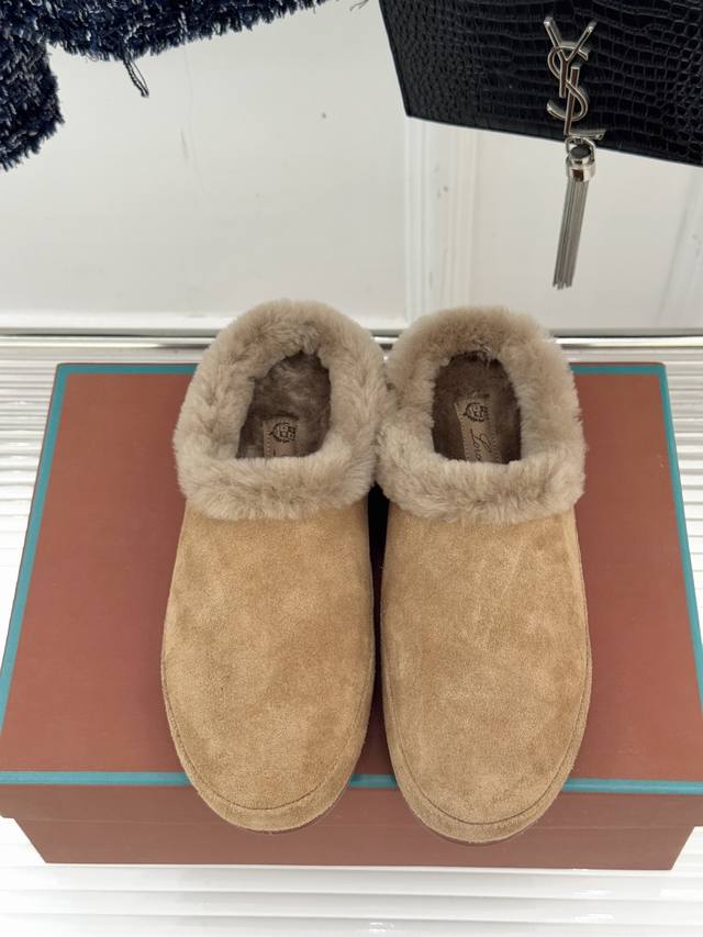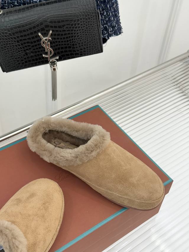 Factory Price Loro Piana Lp70Wf New Couple Retro Wool Casual Slippers When Italian laziness meets retro style, these slippers become an elegant statement for everyday life. The lining is made of fine wool, as soft and comfortable as a cloud. The gentle collision of retro colors retains the brand's consistent understated luxury while subtly revealing the unspoken matching thoughts between couples. The heelless design frees your feet from injury, and the perfectly shaped shoe conforms to your arch. From morning coffee to afternoon strolls, from a nap at home to a leisurely walk on the street, comfort and style go hand in hand. It's not an intentional couple's label, but a tacit understanding hidden in the details. It's his deep brown and her off-white, the warmth of wool and the retro flair, effortlessly filled with exquisiteness and harmony.