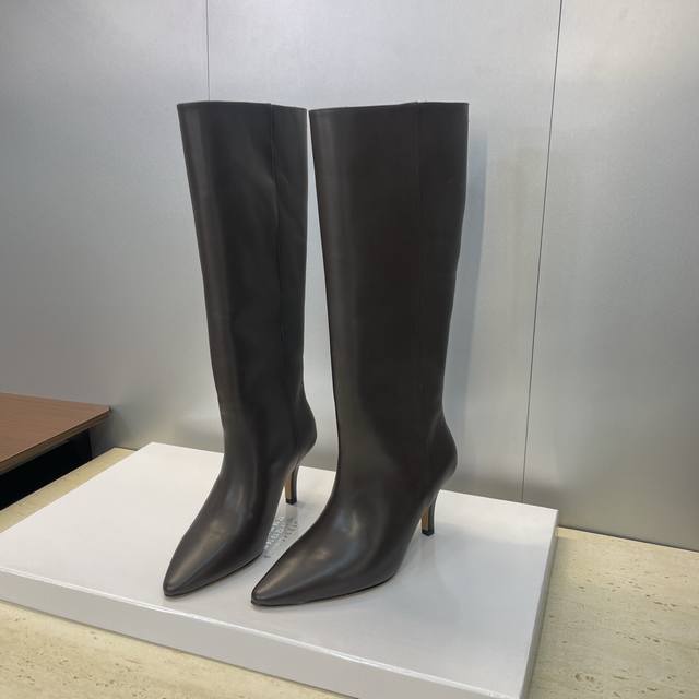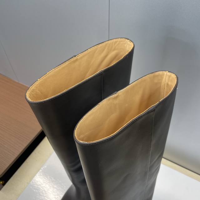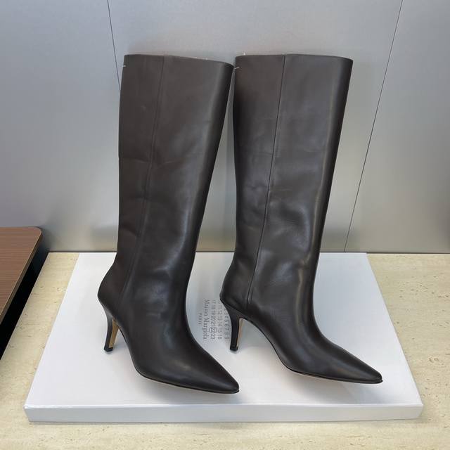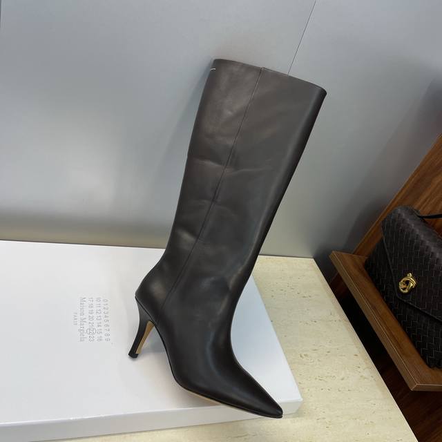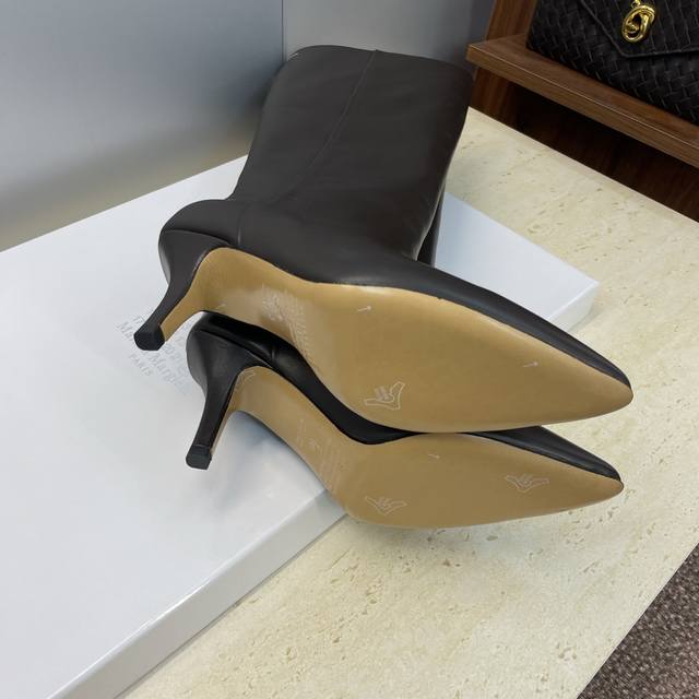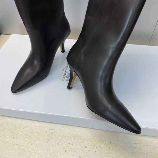 Factory price Ddd Maison Margiela 2025 Autumn/Winter New Slip-on High-top Knee-high Women's Boots Mm6 Mid-heel Pointed Toe Motorcycle Rider Martin Boots Ddd Material: Imported calfskin upper + water-dyed cowhide lining + Italian double-layer genuine leather outsole Ddd Heel height: 6.5Cm Ddd Size: 35-40 40 Custom orders are non-refundable Ddd