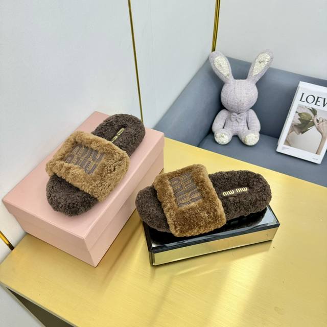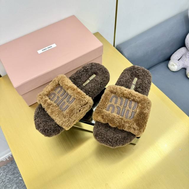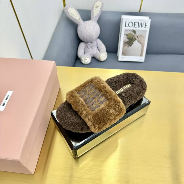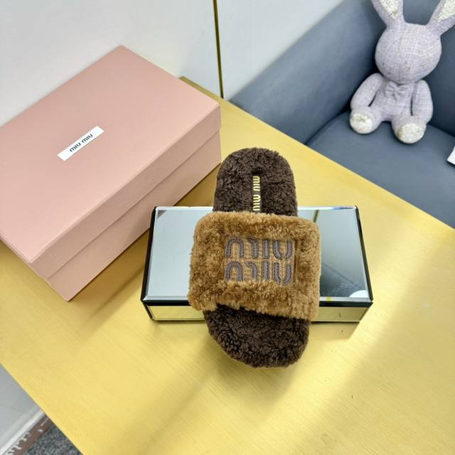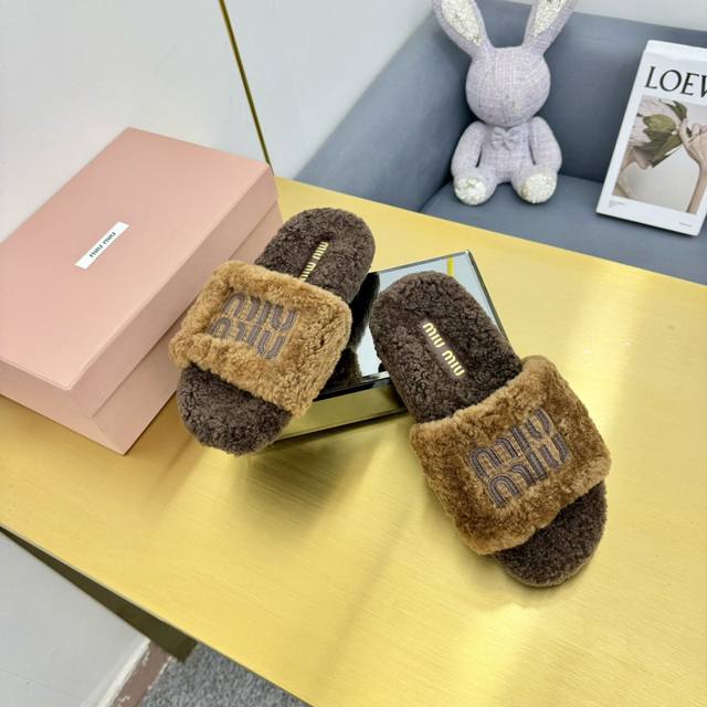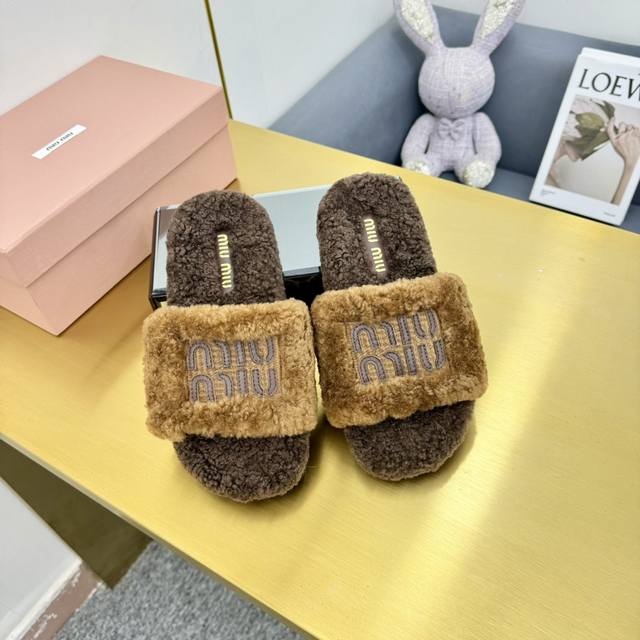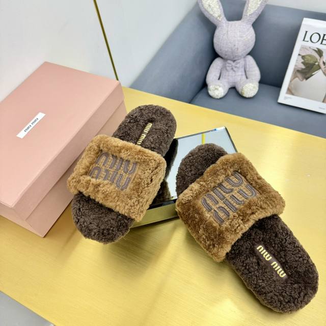 Factory Price: Miu Miu Autumn/Winter New Embroidered Wool Slippers - 1:1 Original Mold, Outshining All Other Versions on the Market. A Favorite Among European and American Socialites, Celebrities, and Influencers. Made with 100% Pure Wool from Imported European Grade A Wool. The upper and insole logo are made of mixed sheepskin. The outsole is made of the same TPU material as the original, making it wear-resistant and slip-resistant. Sizes: 35-40, 41 (Made to Order, No Returns or Exchanges). 5 Colors to Choose From.