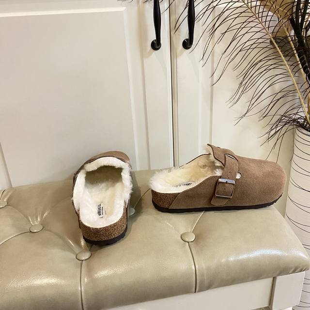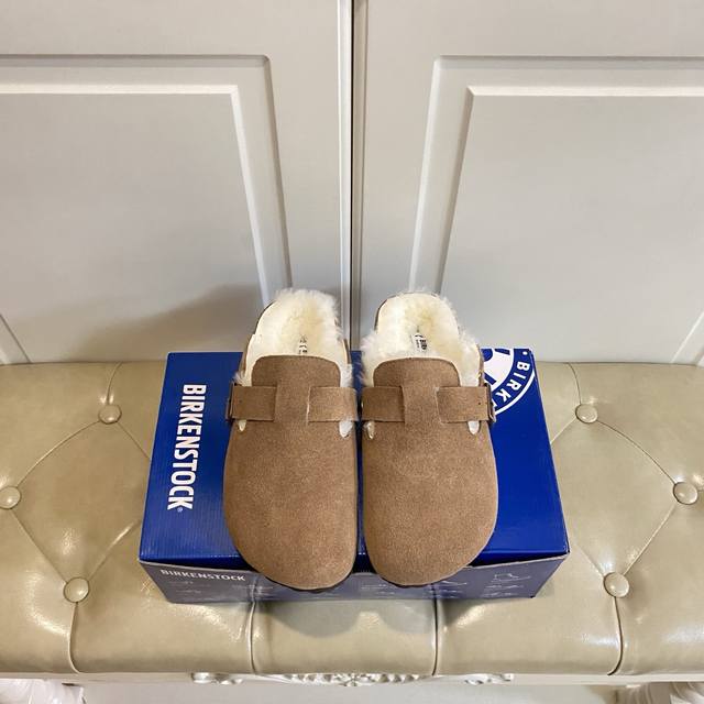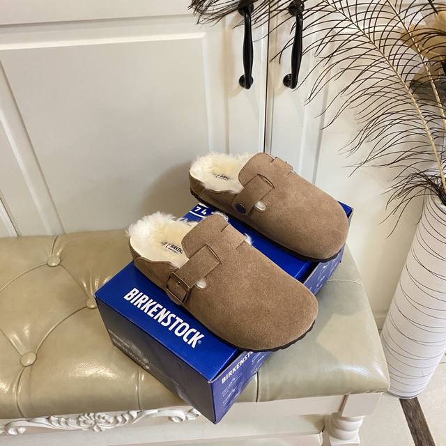 Factory Price (P), Birkenstock Couple Fleece Slippers, Suede Outer, Wool Lining,