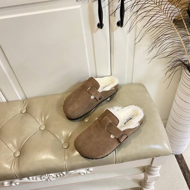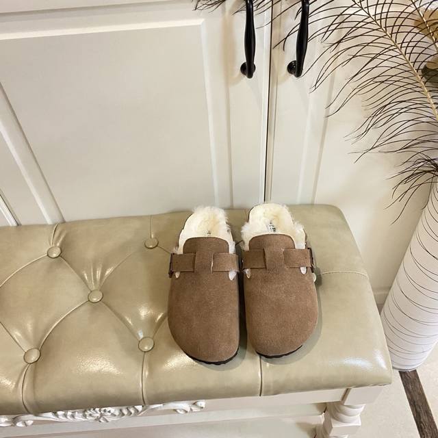 Factory Price (P), Birkenstock Couple Fleece Slippers, Suede Outer, Wool Lining, Sizes 35-45 (