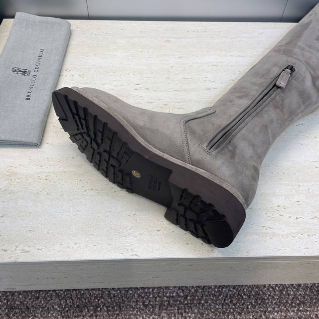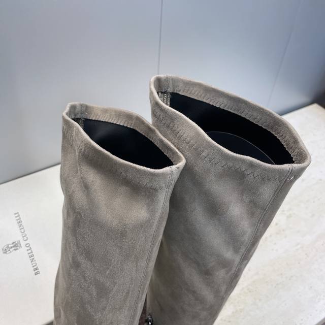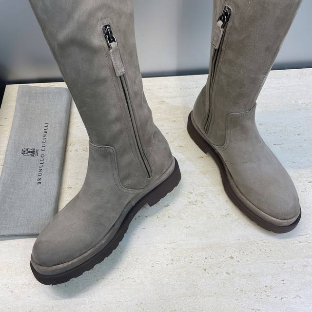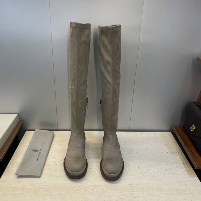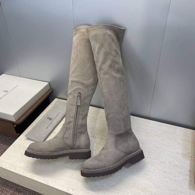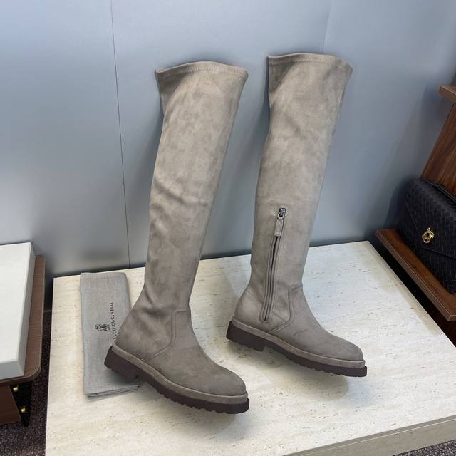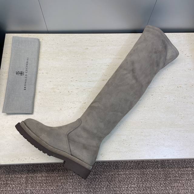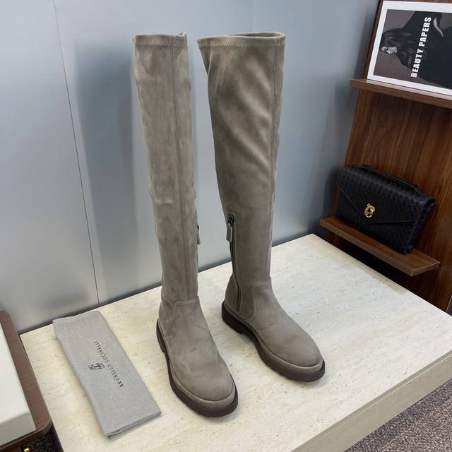 Brunello Cucineli 2025 Autumn/Winter New Nomadic Style Warm High-Top Women's Boots Bc Thick Sole Round Toe Side Zipper Slip-on Over-the-Knee Elastic Motorcycle Rider Boots