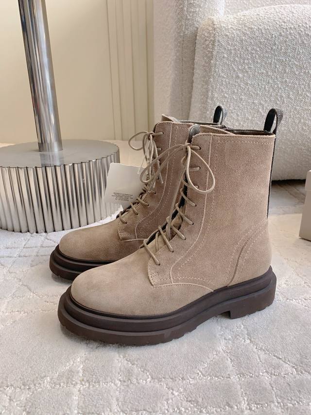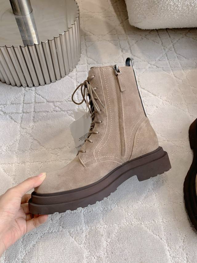 Factory Price p DDD Brunello Cucinell* New Casual Lace-up Ankle Boots with Side Zipper Design, Very Convenient to Put On and Take Off, Unbeatable Design, Full Marks, Stylish and Durable, Highly Recommended DDD Upper: Calfskin, Lining: Sheepskin, Insole: Original Mold, Outsole: Sizes 35-39, 40: Custom Made DDD