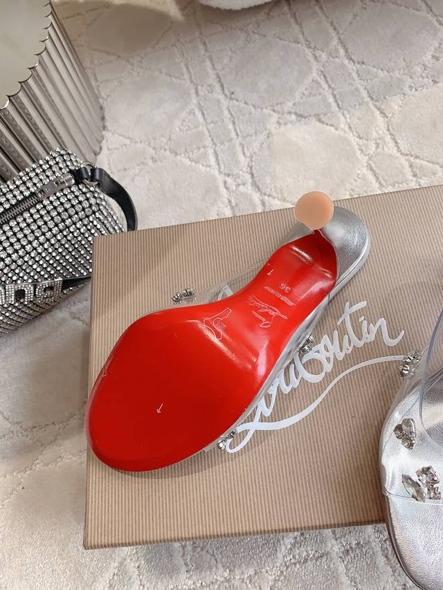 Upper imported transparent PVC material, original imported Ar1 top-grade leather sole, large heel height 8.5cm. Sizes 35-39, 34, 40, 41, 42, 43 are customized.