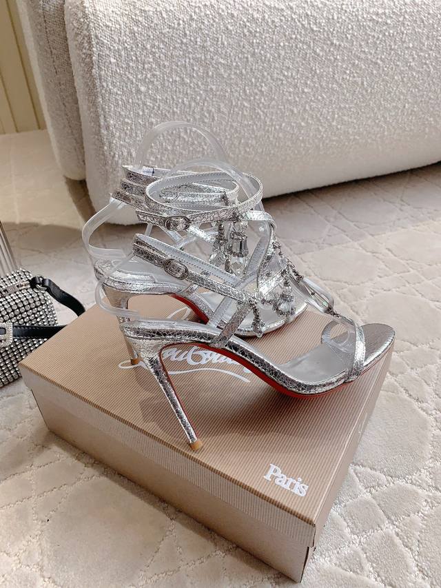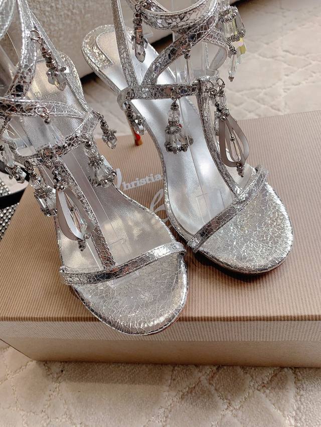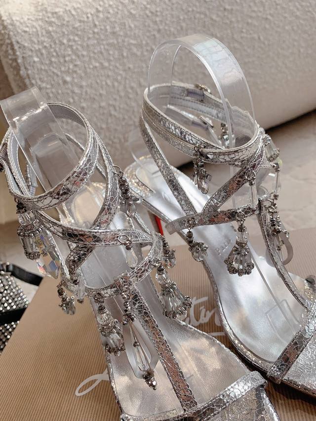 Christian Loubouti* New heavy-duty red-soled high heels, purely handmade, with super-sparkling crystal pendants, dazzling and charming, weaving together a fairy-tale dream.