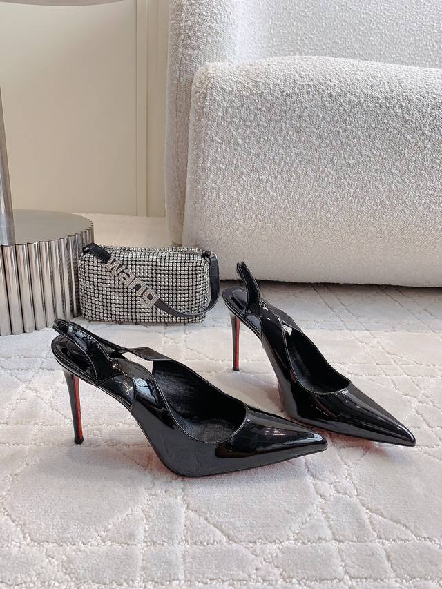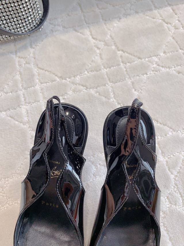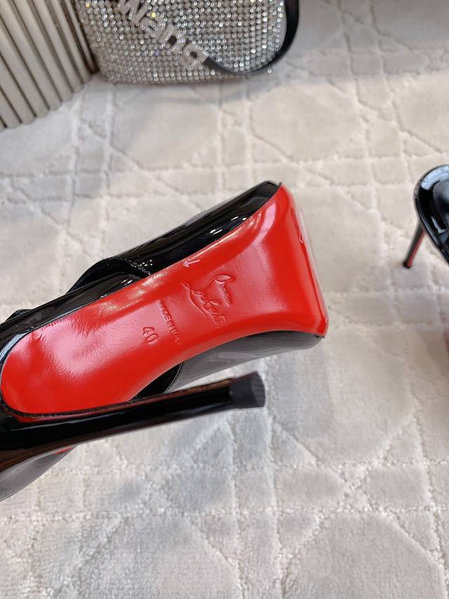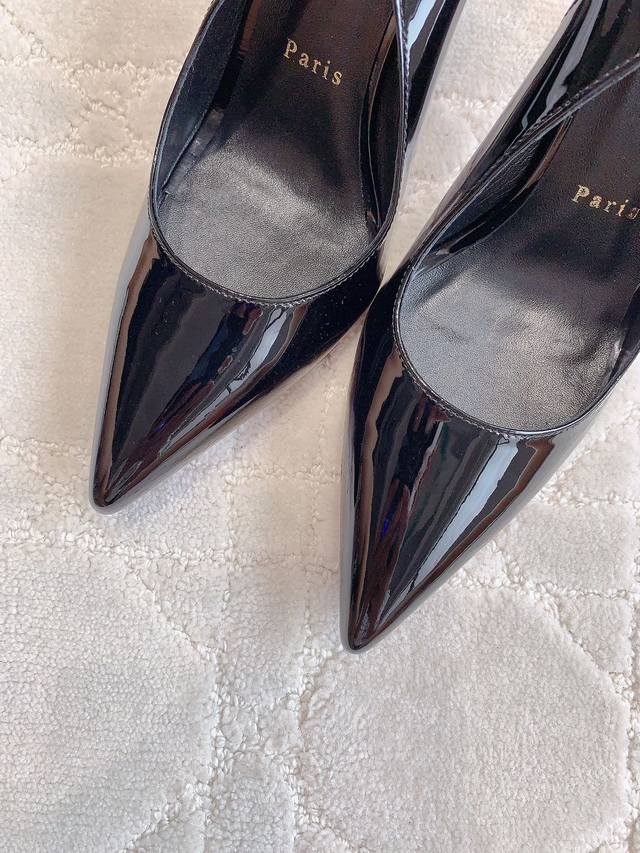 . Patent leather upper, sheepskin lining, imported Ar1 top-grade genuine leather sole, 9.5cm high heel. Sizes 35-39, 34, 40, 41, 42, 43, made to order