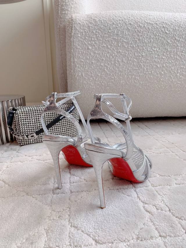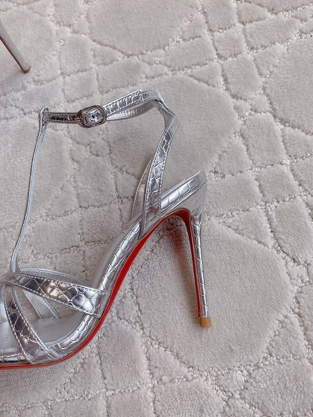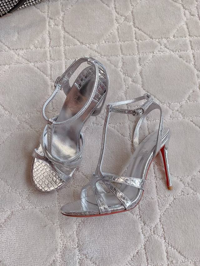 Christian Loubouti* New red-soled high-heeled sandals with smooth curves that highlight graceful style and sexy demeanor. A timeless classic. Cowhide upper, sheepskin lining, imported Ar1 top-grade genuine leather sole, 10cm high heel. Sizes 35-39, 34, 40, 41, 42, 43, made to order.