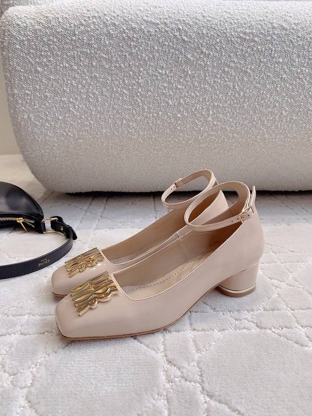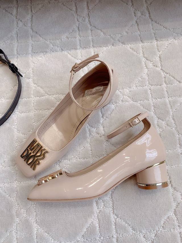 Dio* New patent leather chunky-heeled Mary Jane shoes. A stunning piece. Original custom metal logo embellishment. Exquisite and elegant. So beautiful it's practically captivating.