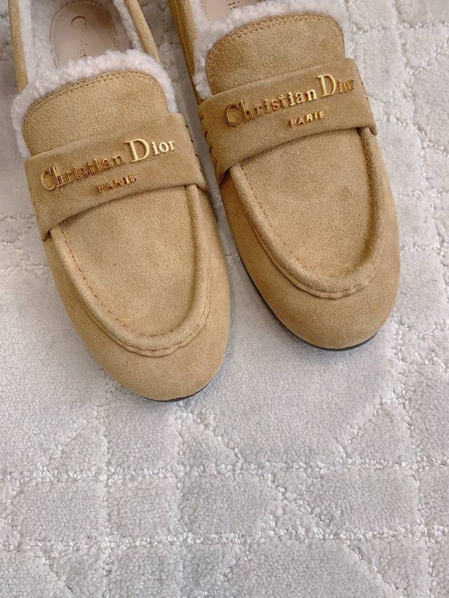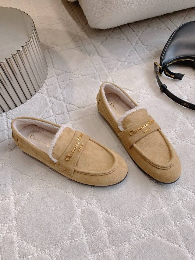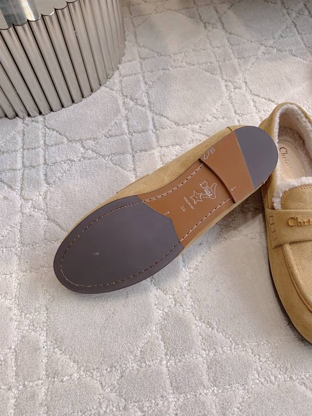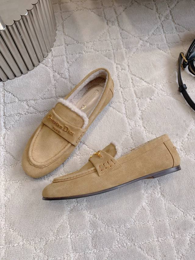 Factory Price p DDD Dio* New Wool Flat Loafers DDD Soft, lightweight, warm, comfortable, exquisite and elegant, crafted from cowhide leather and adorned with a gold-plated metallic Christian Dio* logo, highly recognizable and showcasing exceptional craftsmanship DDD Upper: cowhide suede lining, insole: imported wool, injection-molded genuine leather outsole. Sizes: 35-39, 40, 41. Custom made DDD