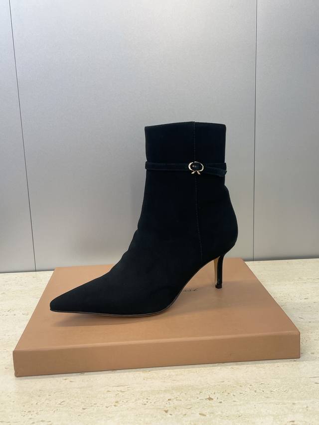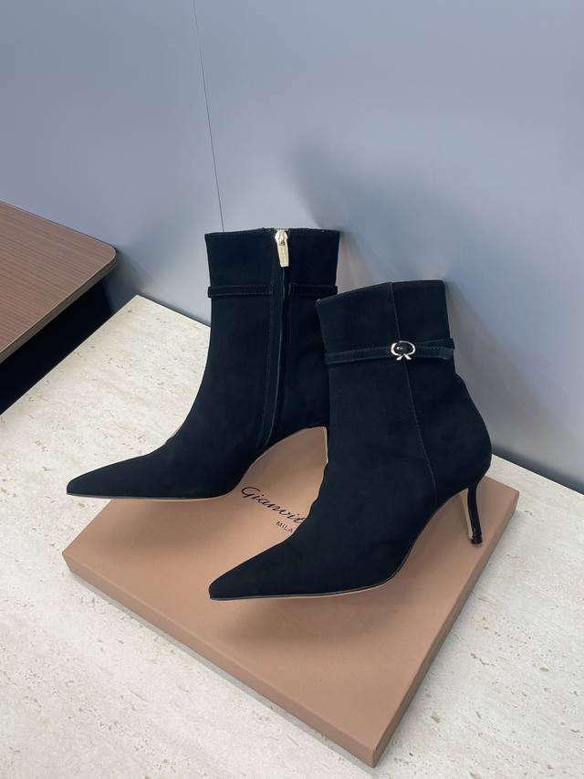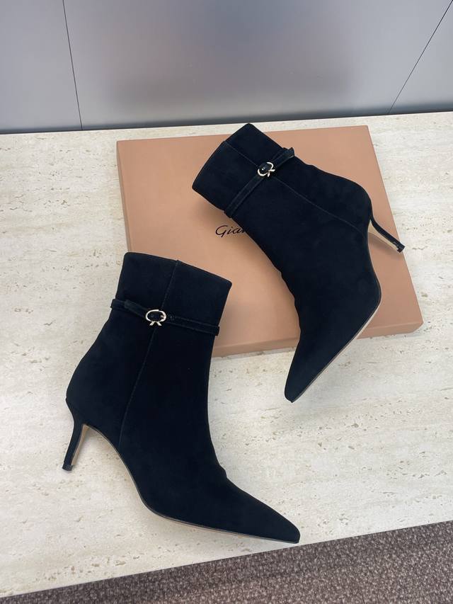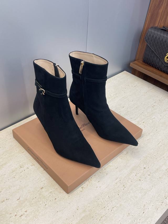 Gianvito Rossi 2025 Autumn/Winter New Arrival & Nude Martin Boots Gr Logo Hardware Buckle High Heel Pointed Toe Side Zipper Motorcycle Rider Ankle Boots