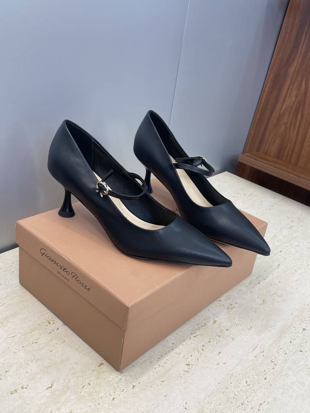 Gianvito Rossi 2025 Autumn/Winter New Women's Shoes Gr Logo Hardware Buckle High Heeled Pointed Toe Single Shoes