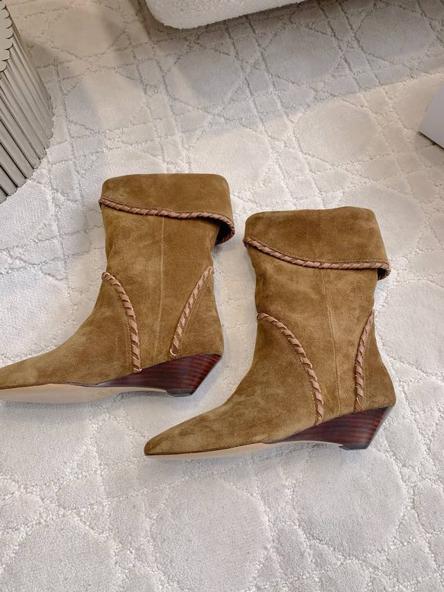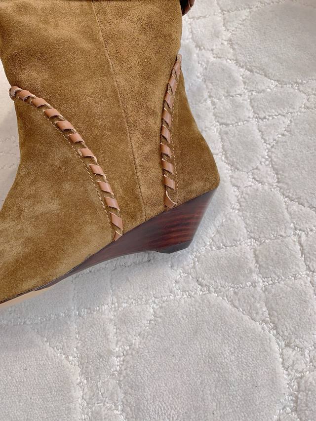 Cowhide upper, sheepskin lining, Italian leather outsole, 5cm height.