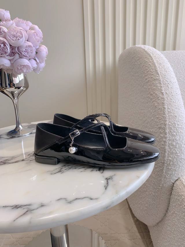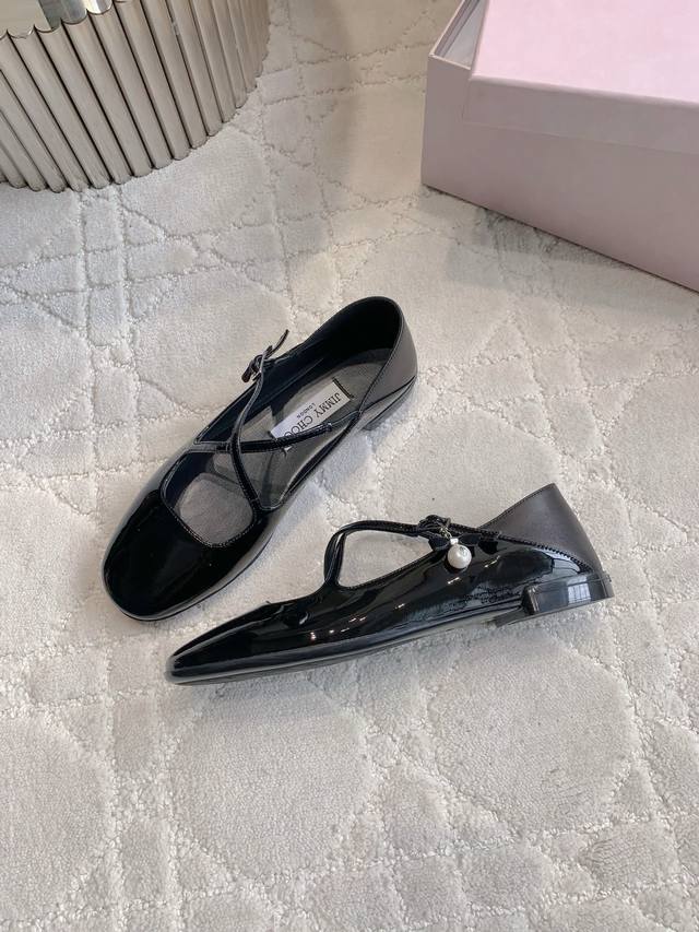 Jimmy Cho* New Pearl Mary Jane Shoes, Cute and Youthful, Bow and Pearl Decoration Show Retro Exquisite, Original Mold, Hardware Quality is Unbeatable, Comfortable to the Foot, Classic and Versatile Style