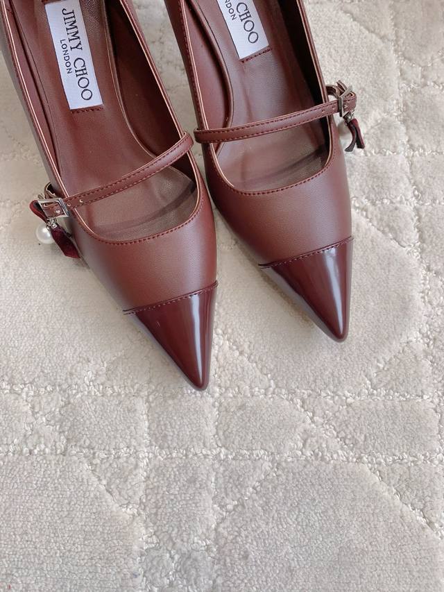 Jimmy Cho* new pointed high heel shoes with pearl pendants, exquisite and elegant, classic and versatile style, comfortable and easy to wear