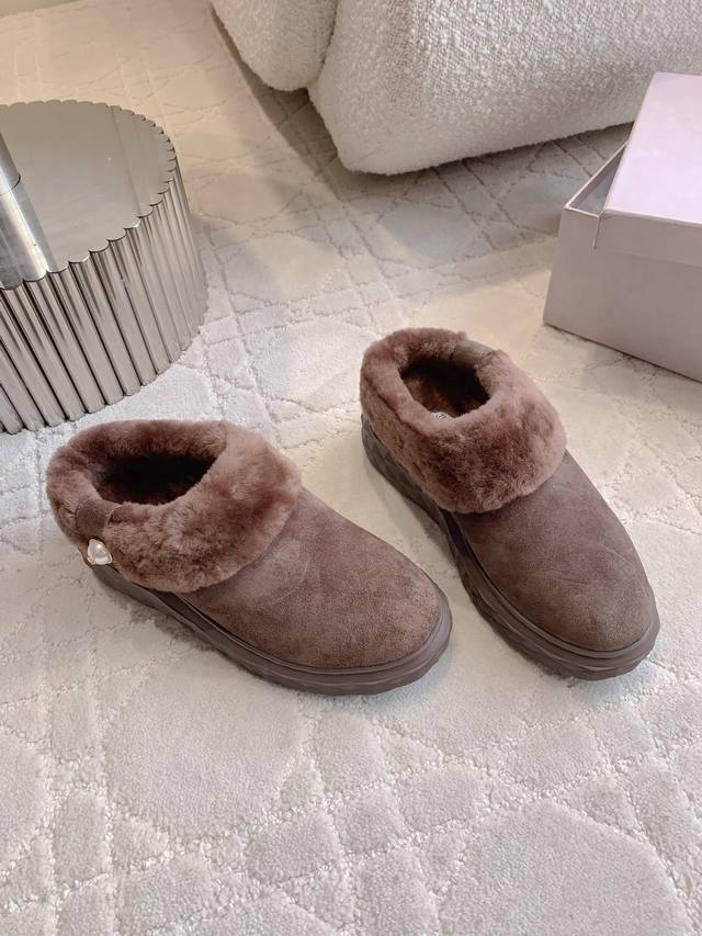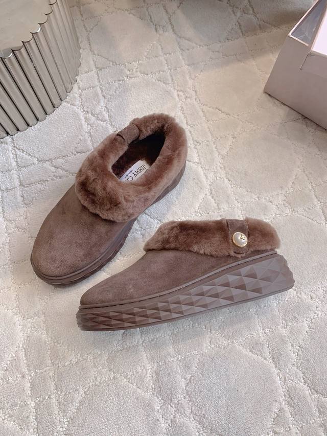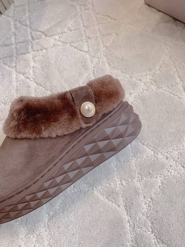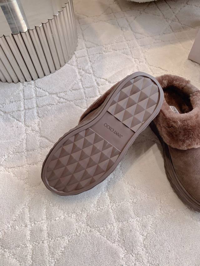 Factory Price p DDD Jimmy Cho* New Wool Warm Thick-Soled Half-Slippers Super Thick and Warm Classic Versatile Style DDD Upper Cowhide Leather Lining Insole Imported Australian One-Piece Sheepskin Original Mold Outsole DDD Sizes 35-39 40 Custom Made DDD
