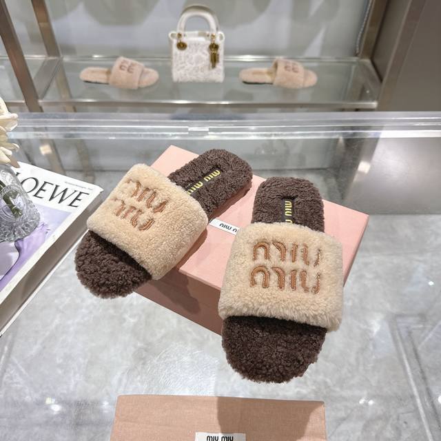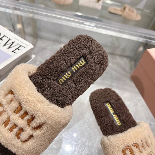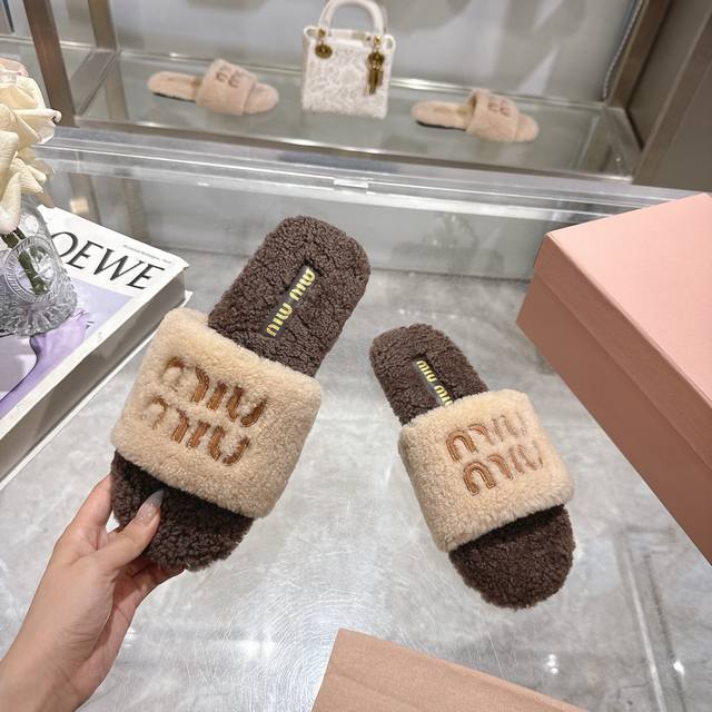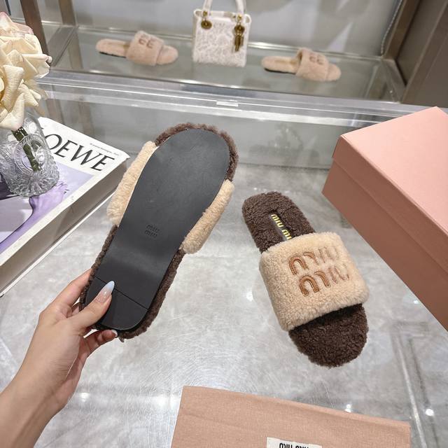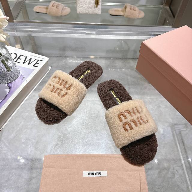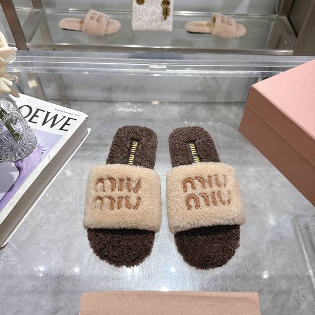 Miumiu classic autumn and winter lettered furry slippers