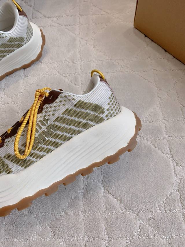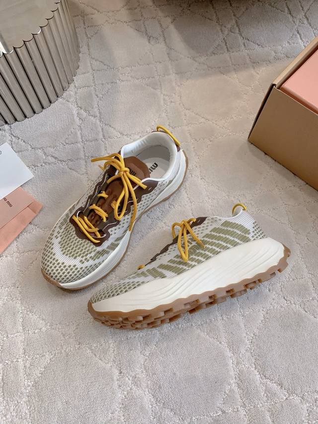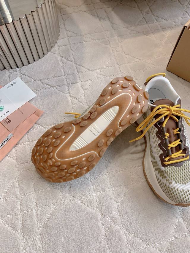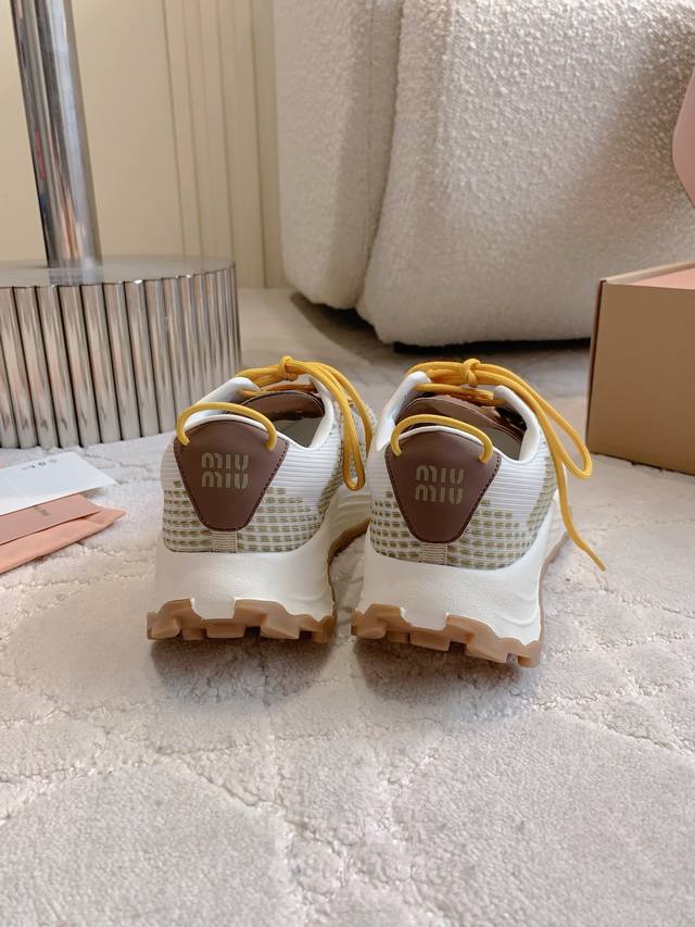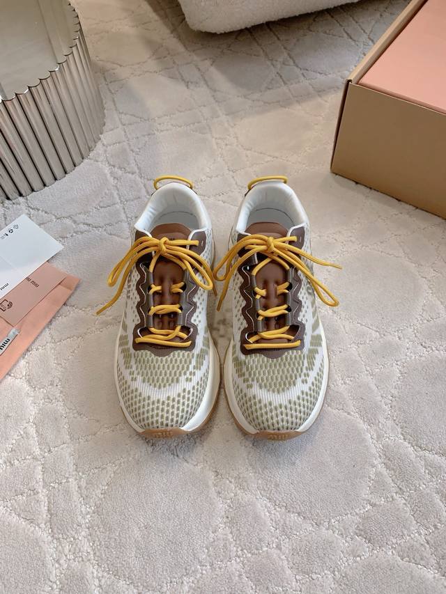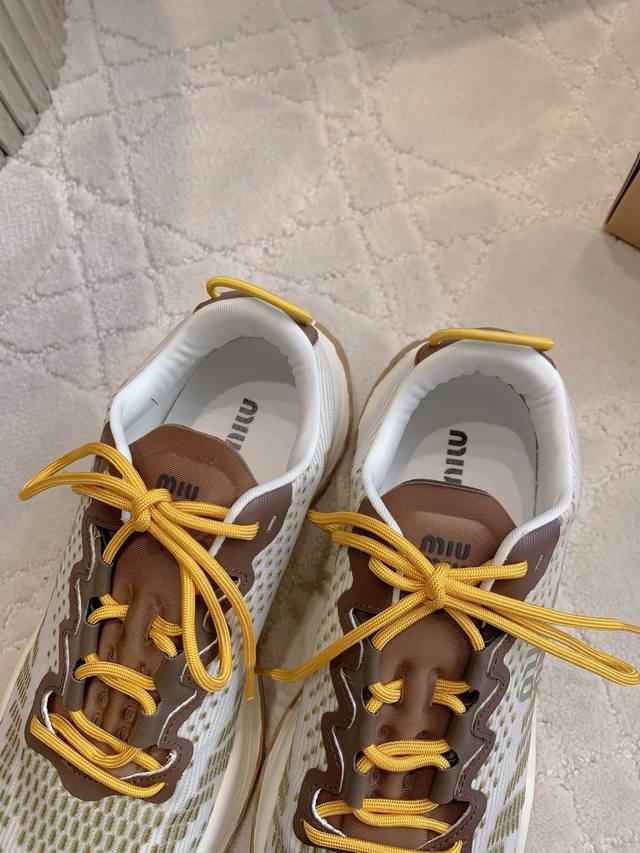 Miu's new mesh sneakers with thick soles instantly create long legs. These shoes are so beautiful that they can be worn with any outfit. The colors are so beautiful.