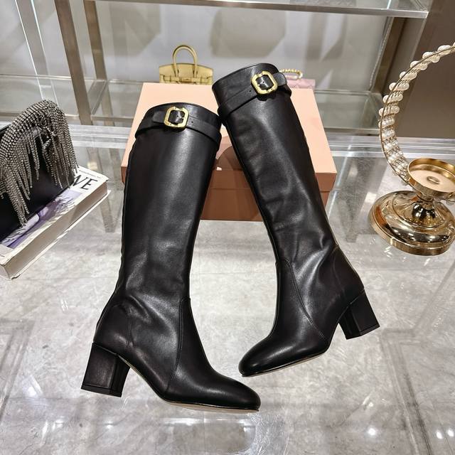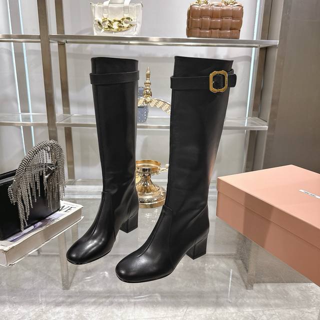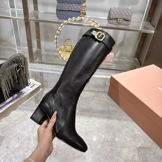 Factory price p New autumn and winter short boots of top quality Miumiu. This year's official website's main promotional hot-selling model, Miu has always been known for its girly and blingbling style, and these autumn and winter boots are no exception! The shoe shape is elegant and simple! The outer metal buckle thick heel design stretches the leg line, making it easy for beauty-conscious ladies to control! Absolutely a must-have item for this autumn and winter season