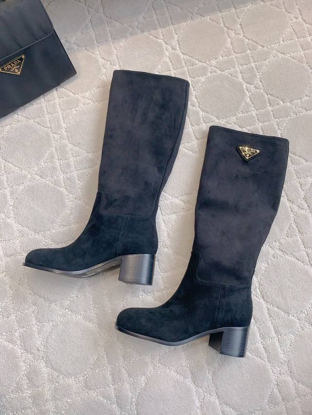 Factory Price p DDD prad* New high-heeled triangle logo long boots, super leg-lengthening, classic and versatile, never out of style DDD Upper made of high-quality sheepskin, insole made of sheepskin, Italian genuine leather, outsole, heel height 6cm. Sizes 35-39, 40, 41. Custom made DDD
