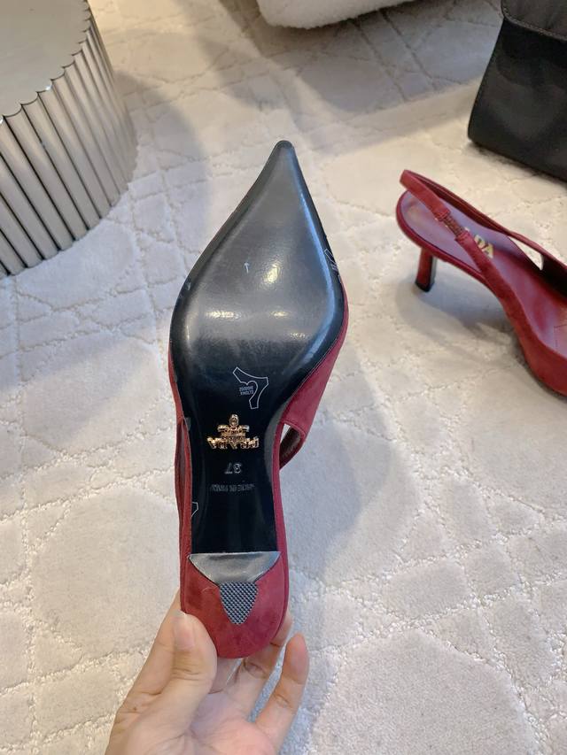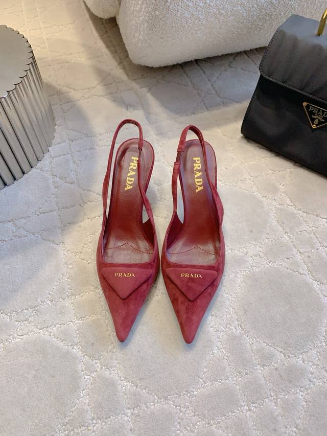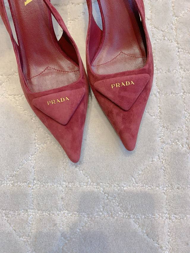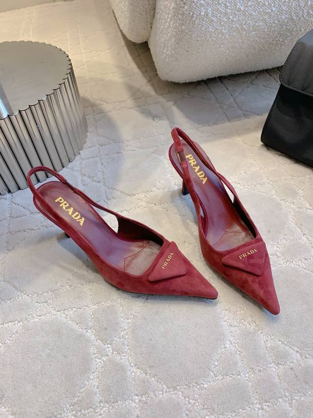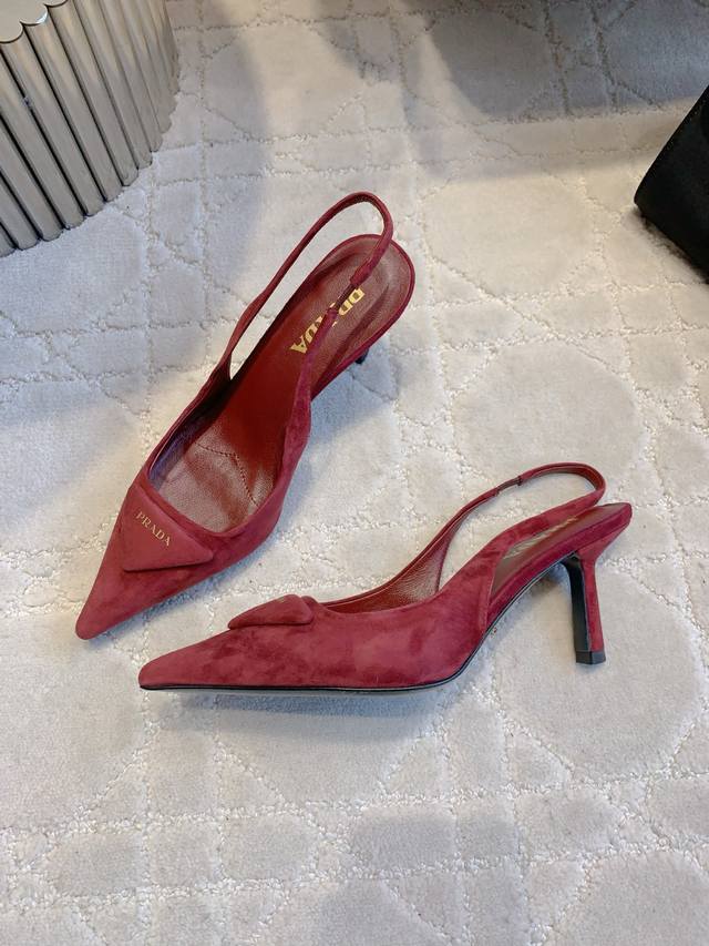 Factory Price p DDD prad* New Pointed Toe Suede High Heels Classic Triangle Logo Embellishing Simple High-End Feel Really Slimming and Elegant - A Must-Have for Stylish Ladies DDD Original Lambskin Upper Triangle Logo Insole Lambskin Italian Genuine Leather Outsole Heel Height 7cm Sizes 35-39 34 40 41 Custom Made DDD