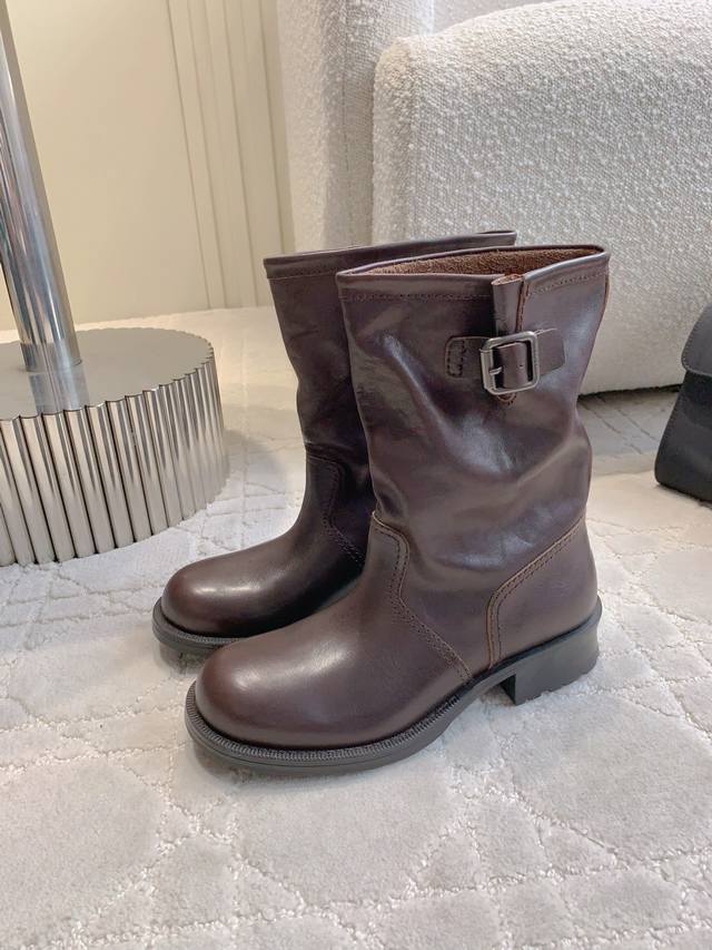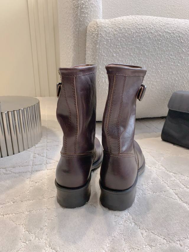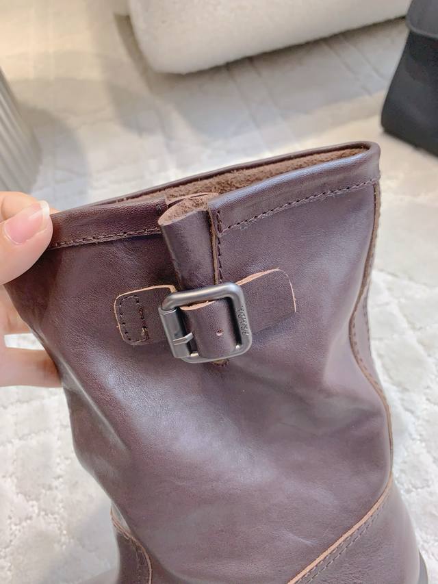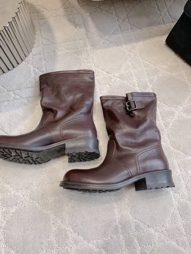 prad* New retro ankle boots with a natural stacking feel. Looks great on the feet, slims the legs, and is lightweight and comfortable. Doesn't rub the feet. Super comfortable to wear. The wrinkles created by the waxed leather give it a relaxed feel. It's both classy and wild.