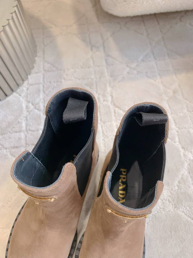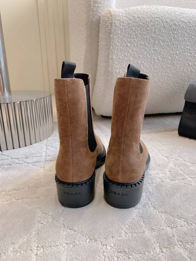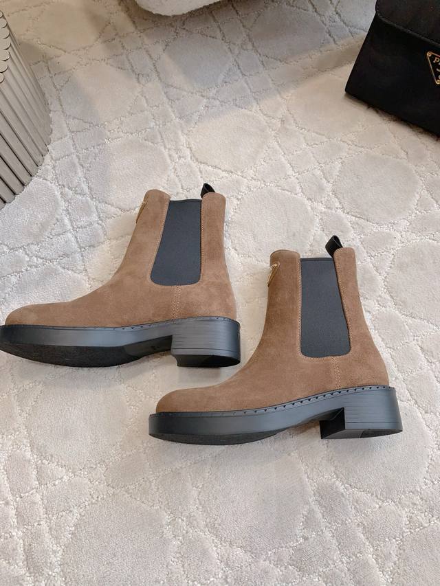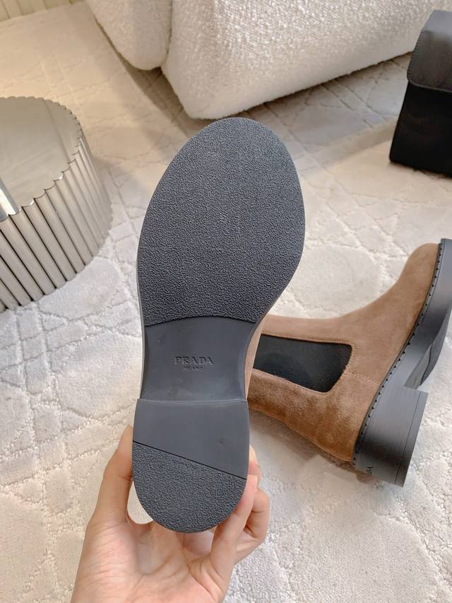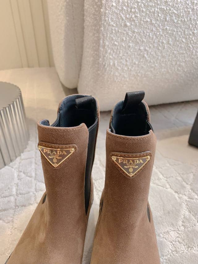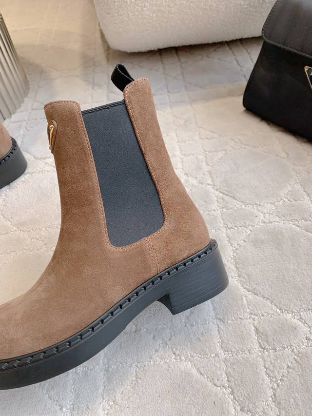 prad* New triangle logo thick-soled short boots. Classic triangle logo decoration. Smooth and handsome shoe shape. Super comfortable to wear. Absolutely cool. Versatile boots