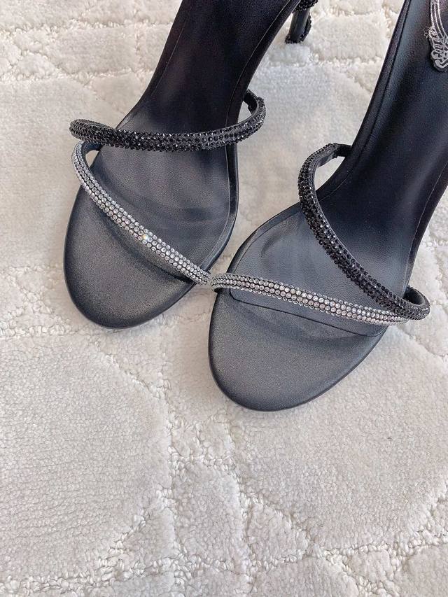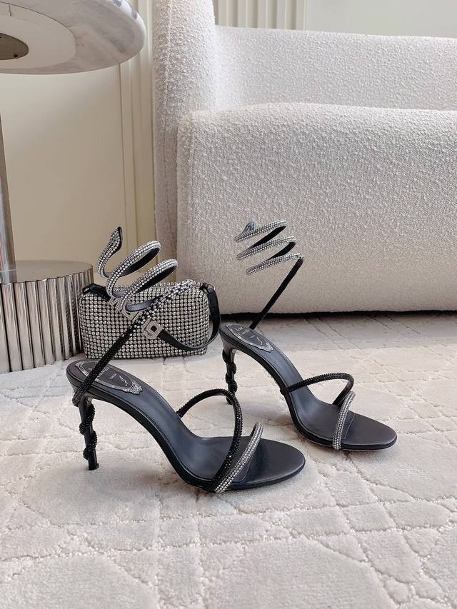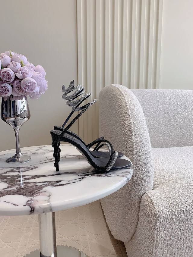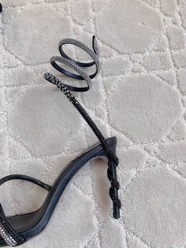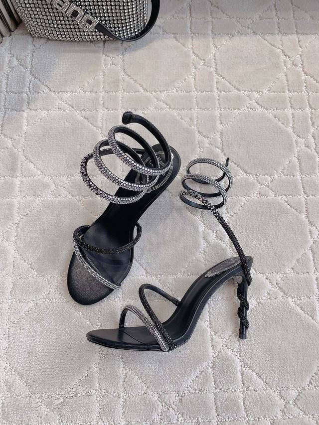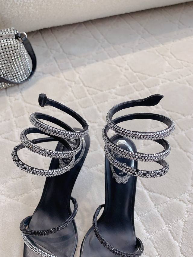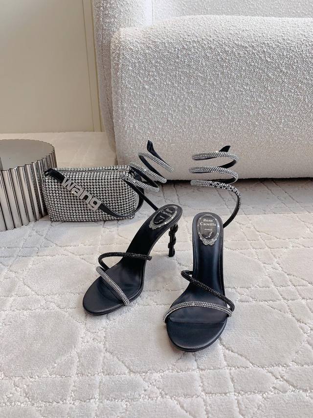 Ren* Caovill* Classic snake-shaped rhinestone-encrusted high-heeled sandals