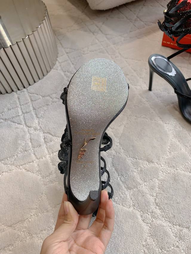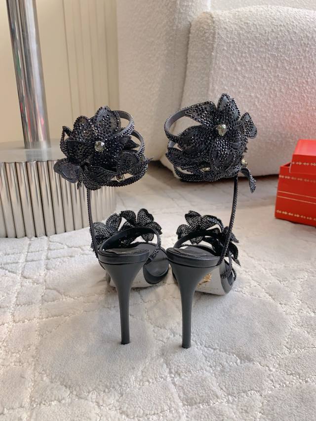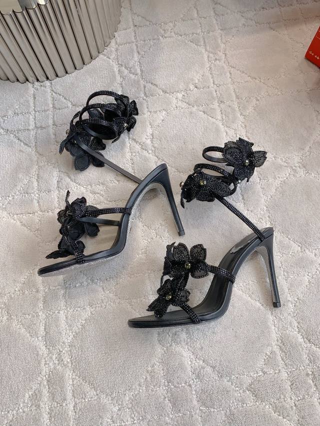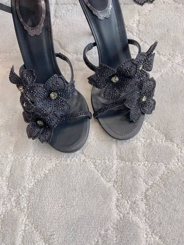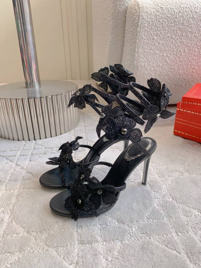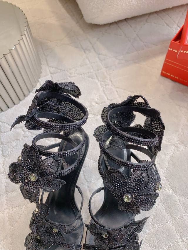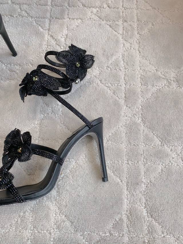 Factory Price p DDD Ren* Caovill* New Crystal Flower High-Heeled Sandals Bling Bling Exquisite and Flawless Fairy Butterfly Snake Straps Shine Brightly and Ethereally, Truly a Work of Art DDD Imported lace with super sparkly rhinestone insole, sheepskin, Italian genuine leather outsole DDD Heel height 9.5Cm Sizes 35-39 34 40 41 42 43 Custom Made DDD
