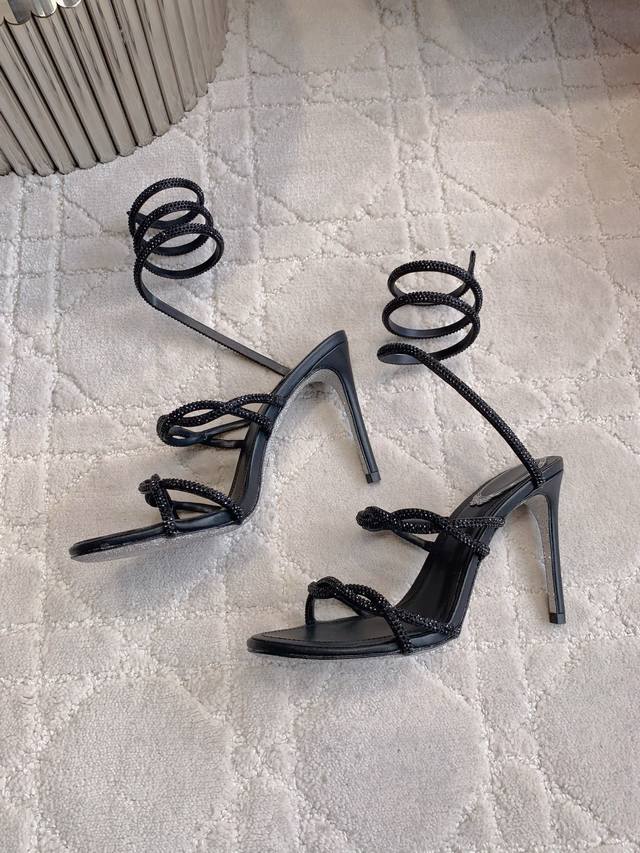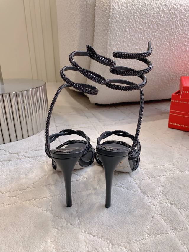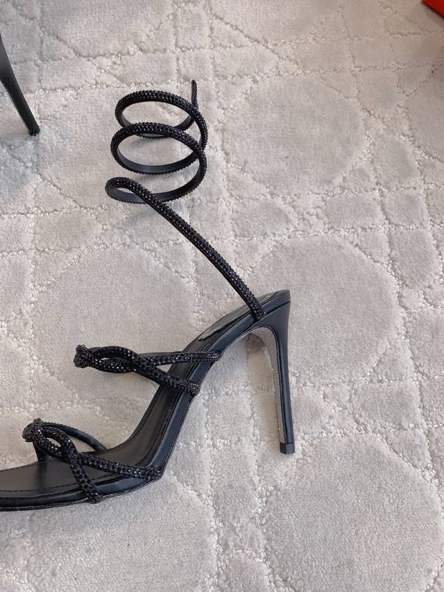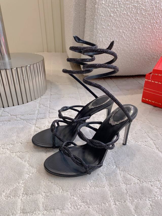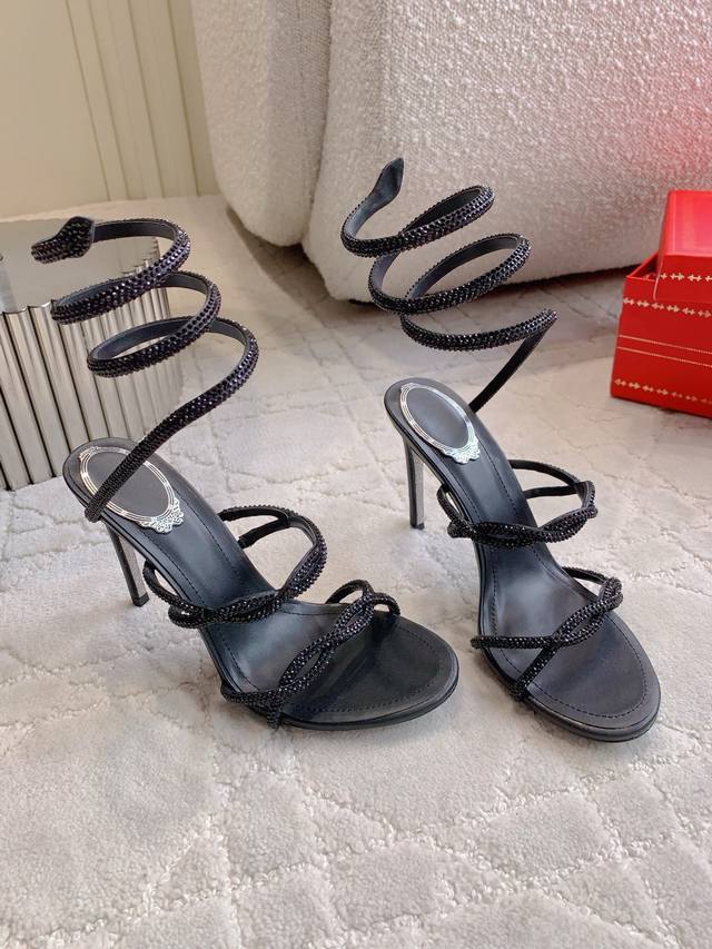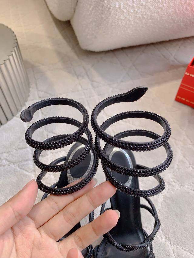 Factory Price p DDD Ren* Caovill* Snake-Shaped Rhinestone High-Heeled Sandals - Exquisitely Elegant, Truly a Work of Art! DDD Upper: Silk, Super Sparkling Rhinestones; Insole: Sheepskin; Italian Genuine Leather; Outsole: 9.5cm; Heel Height: 9.5cm; Sizes: 35-39, 34, 40, 41, 42, 43; Custom Made DDD