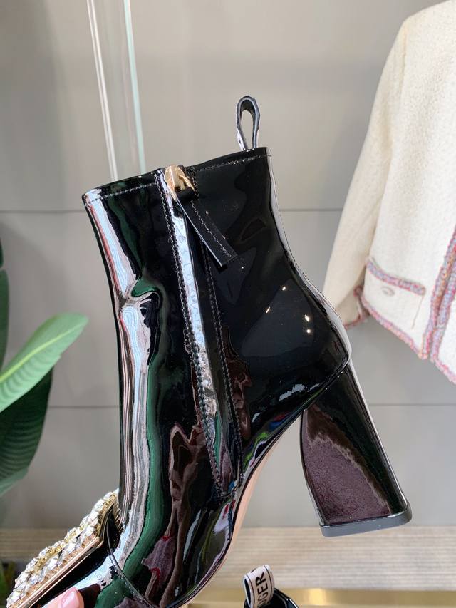 Roger Vivie* New Fall/Winter Diamond-Buckle Chelsea High-Heeled Ankle Boots. The block heel design is very comfortable and the classic diamond-buckle embellishment is elegant and sophisticated! Built-in elastic bands on the sides make it easy to put on and take off!