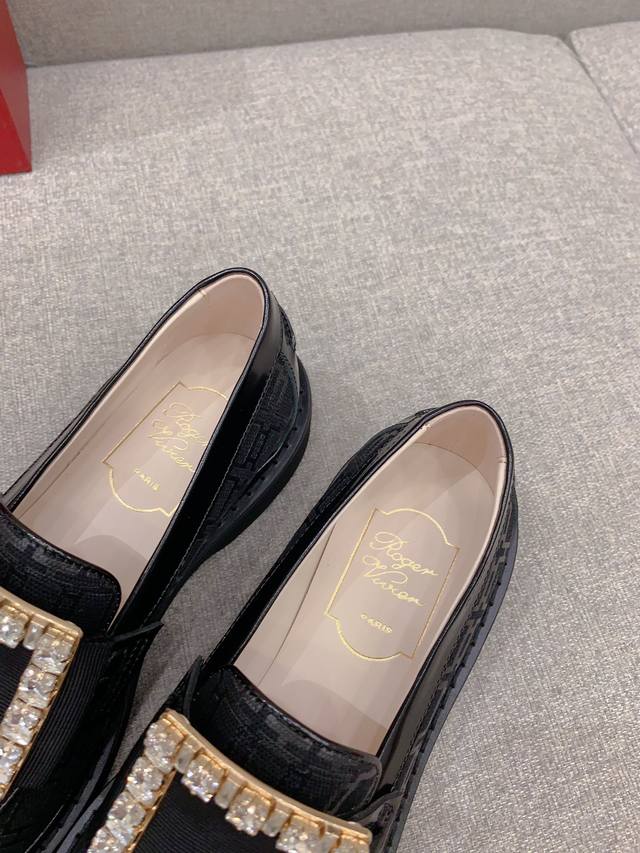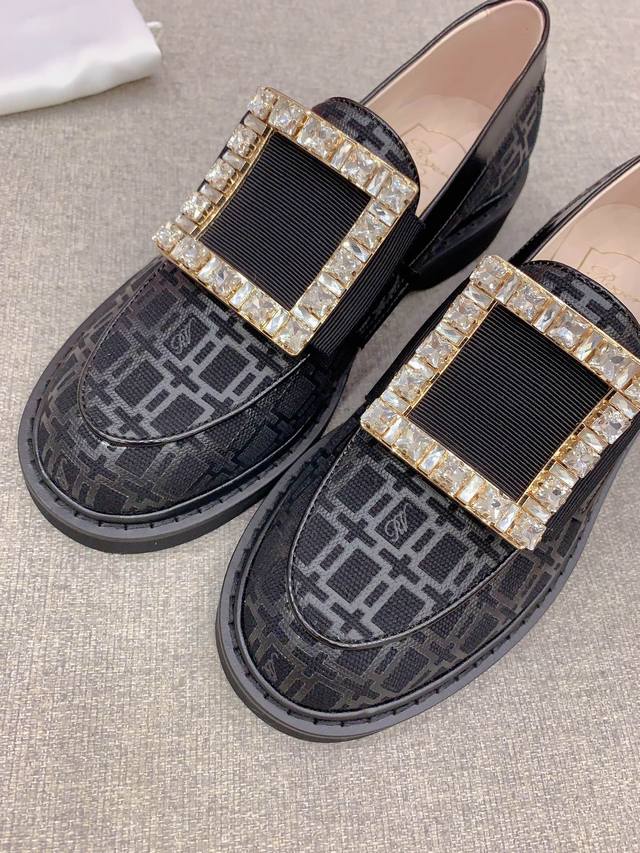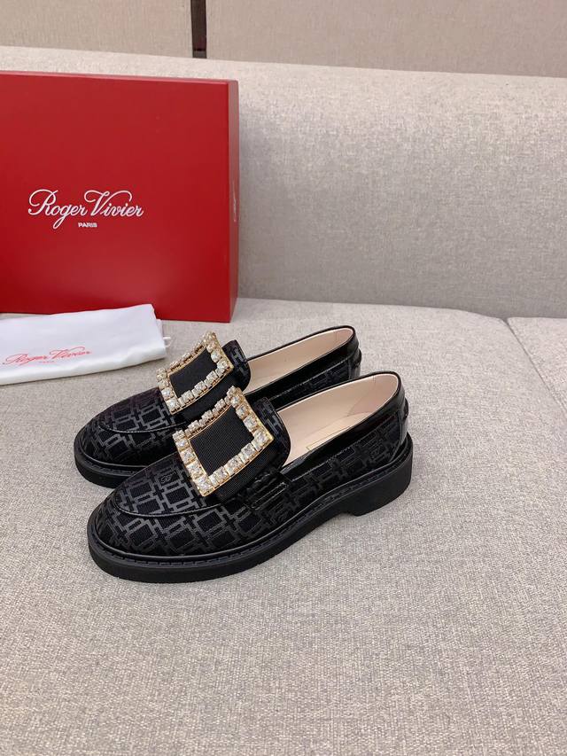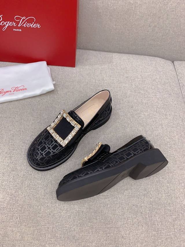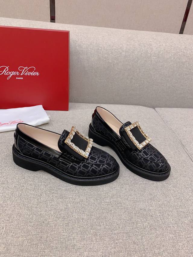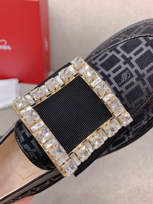 Factory Price p DDD Roger Vivie*New Printed Rhinestone Buckle Loafers Black fabric print with rhinestone buckles The whole pair of shoes looks super gentle and beautiful on the foot DDD Original fabric upper Original mold Rhinestone buckle Insole Original sheepskin mold Outsole Sizes 35-39 34 40 41 Custom Made DDD