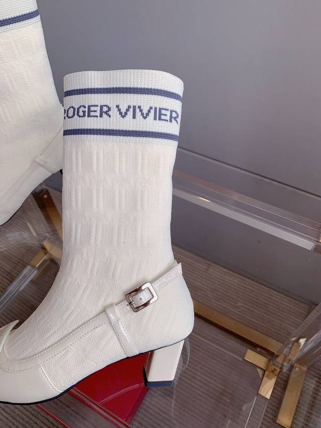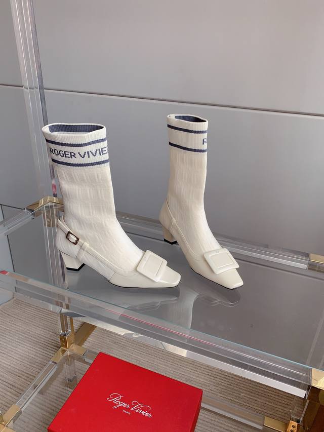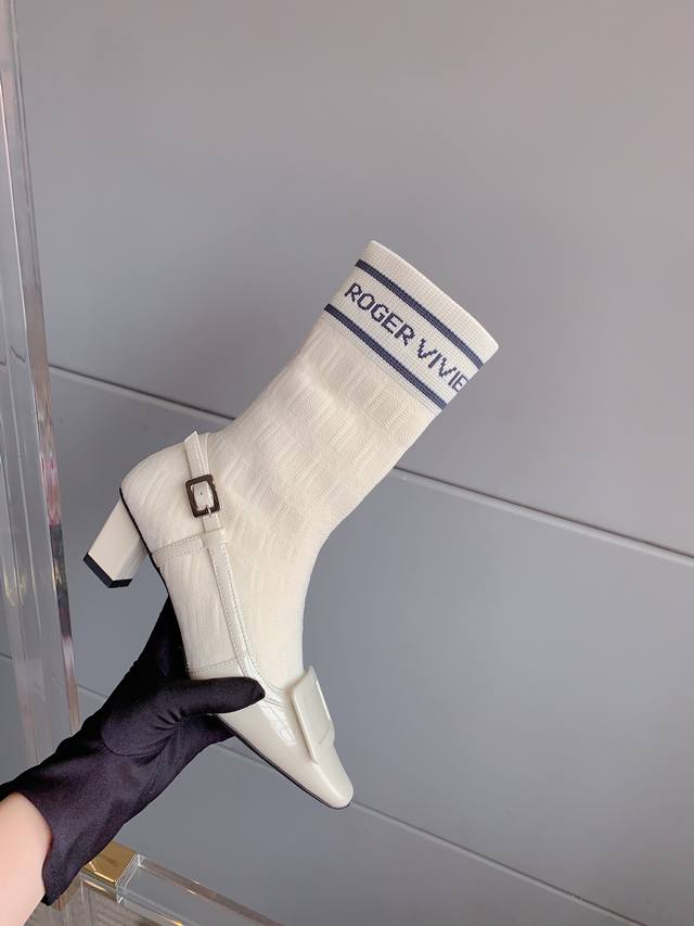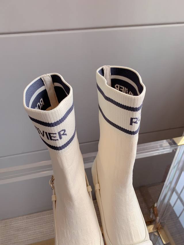 Roger Vivie*'s new knitted sock boots are super slimming. The two-piece design eliminates the hassle of matching and the color combination is luxurious.