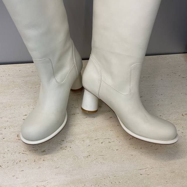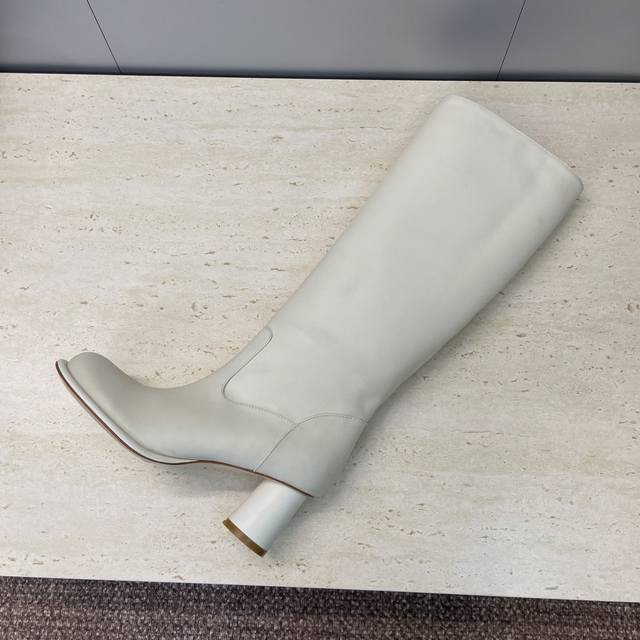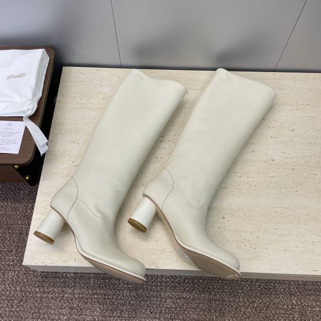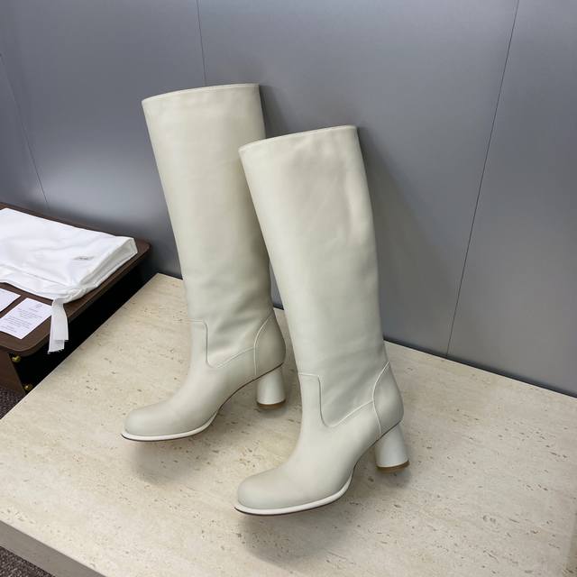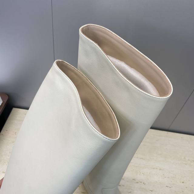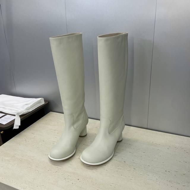 The Row 2025 Autumn/Winter New Chunky Heel Motorcycle Knee-High Boots Women's High Heel Round Toe Slip-on Rider High Boots