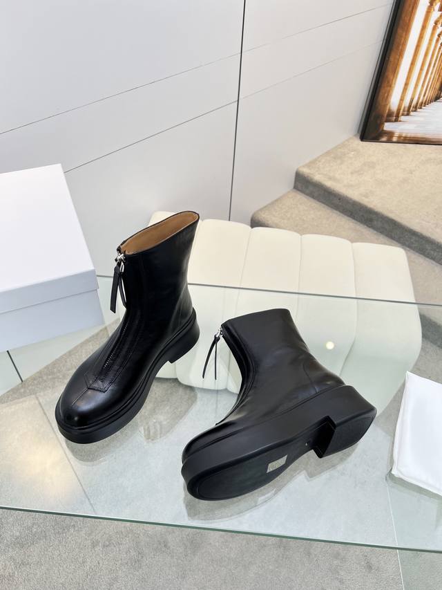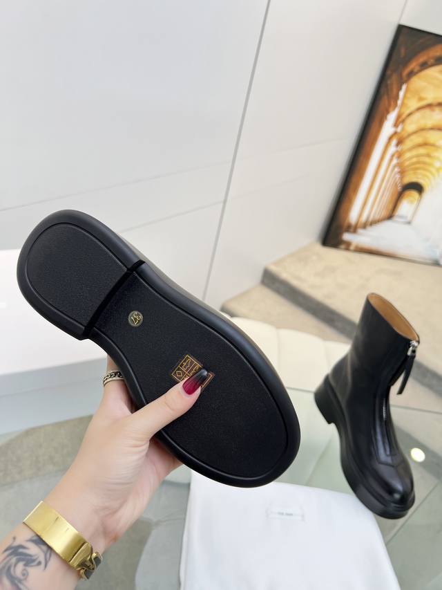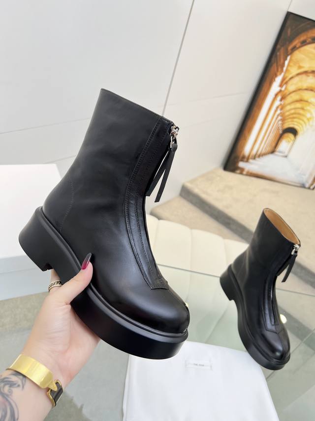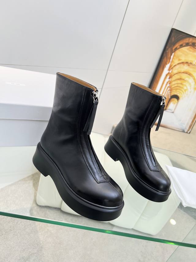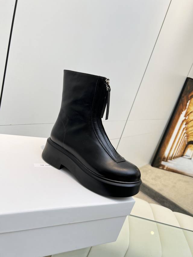 Factory price p The.Row upgraded version of Liu Wen's classic thick-soled ankle boots for fall and winter. Liu Wen's style, modeled by numerous celebrities, is a top-quality, original replica. Custom-made upper made of imported calfskin, ultra-soft, and with a mixed-breed sheepskin lining. The front zipper design is simple and stylish! Extremely comfortable and pedicured. The molded, one-piece PU foam sole is consistent with the original, very light and soft! Original matching set. Sizes 35-40 and 41 can be customized and are non-refundable.