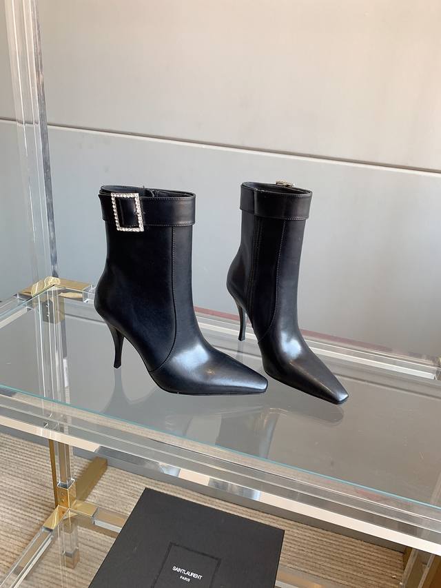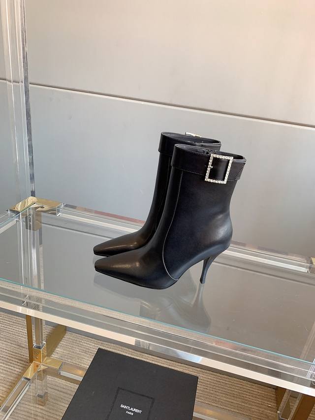 Ys* New diamond buckle high-heeled ankle boots by Yang Shulin, who understands women's hearts best and will not accept any rebuttal. Super feminine artifact