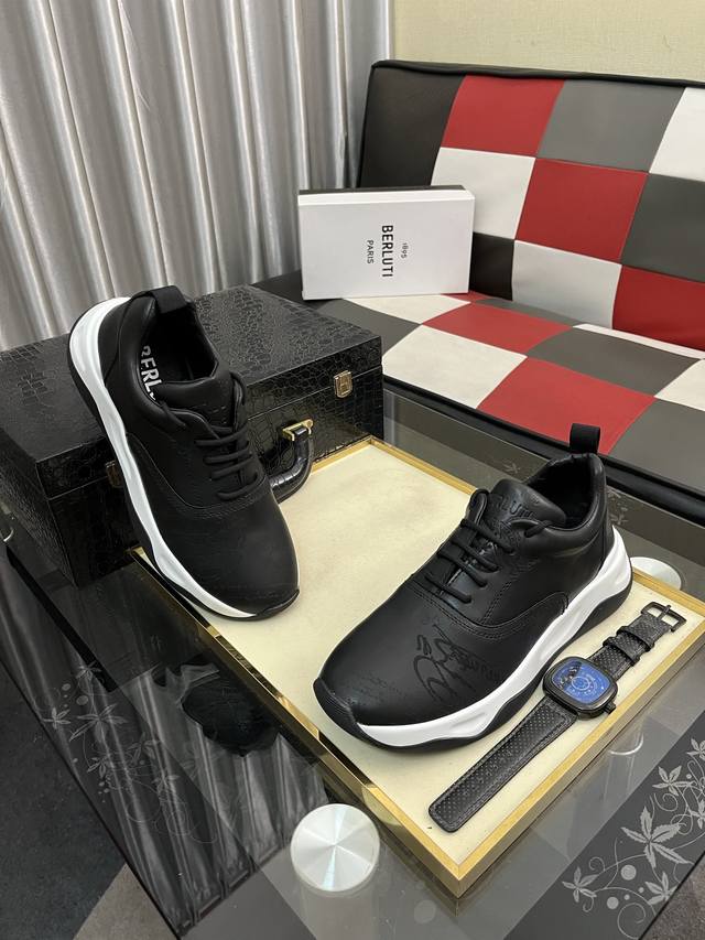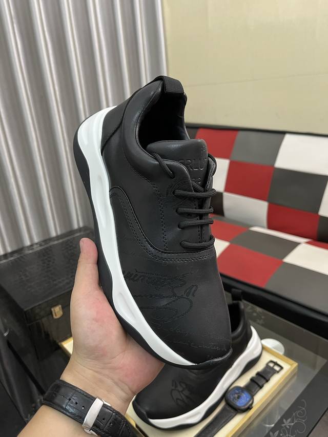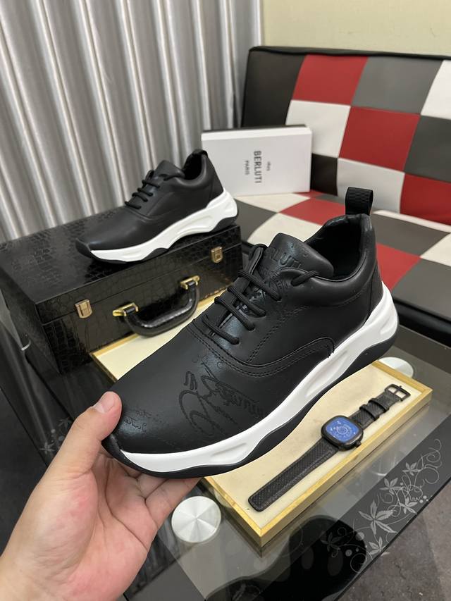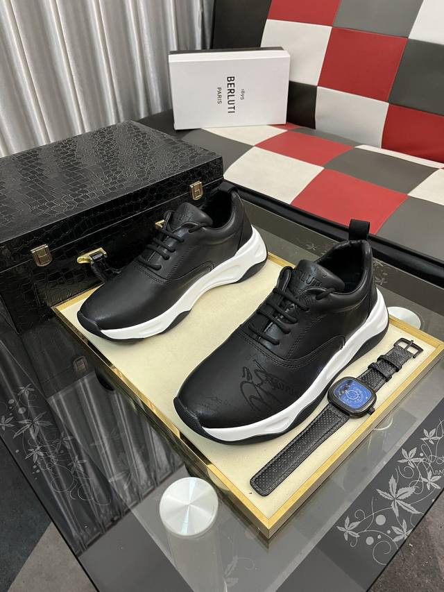 Factory Price (pp): Berlui hand-rubbed casual leather shoes, featuring imported special cowhide with a rubbed finish, combined with genuine leather laser engraving patterns showcasing luxurious craftsmanship. The cowhide lining uses a special mold, and the rubber outsole is laser-engraved. The upper features a plain toe design, simple yet stylish. The tongue includes an 1895 logo badge. Sizes: 38-463 colors available.
