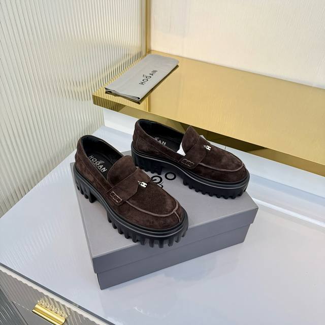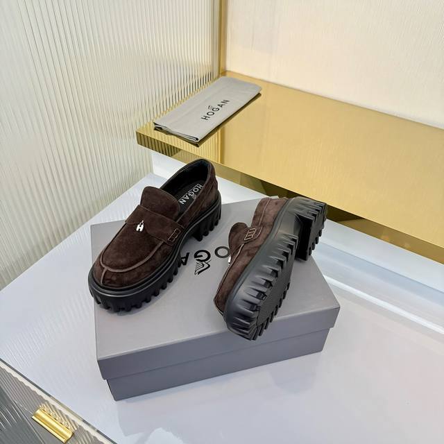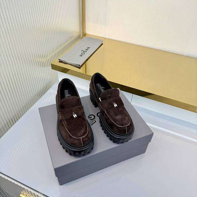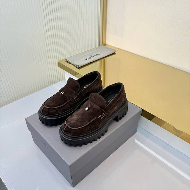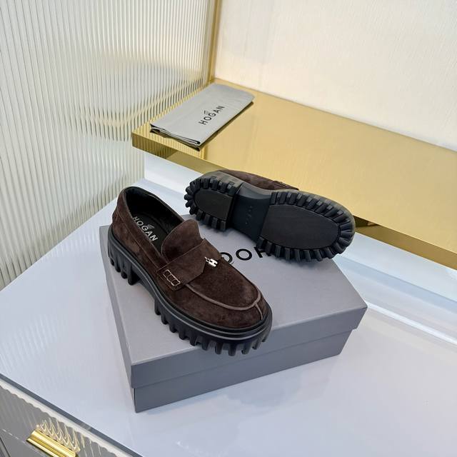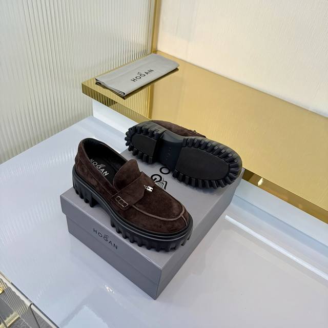 Factory Price (pp): Ddd Hogan H700 series features a distinctive platform design with a striking H logo embedded in the iconic H-Stripes sole. These preppy loafers are crafted from velvety suede, adorned with subtle horizontal stripes and an H letter charm. Lightweight yet stylish, they offer urban chic. The memory foam insole provides lightweight comfort and effortlessly elegant style. Sizes 34-40. Reposting this image will definitely boost sales! DDD