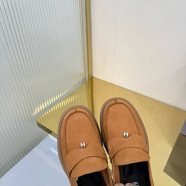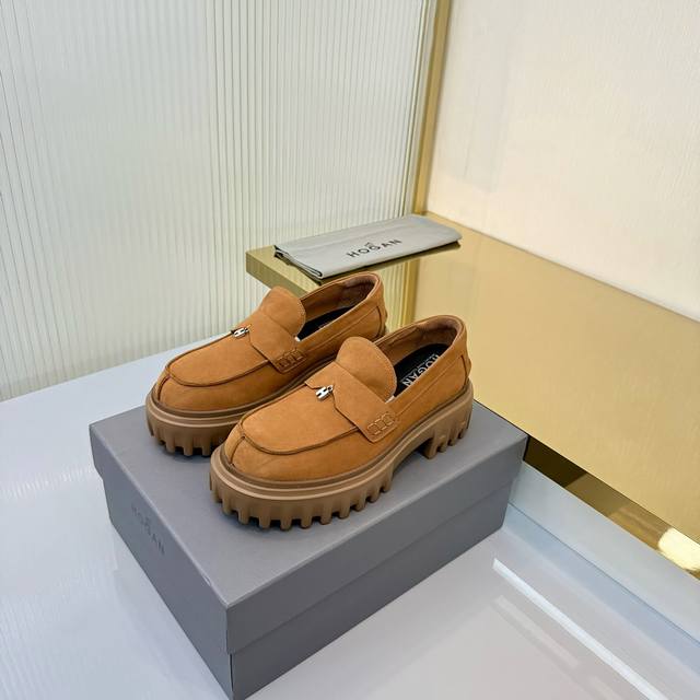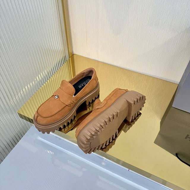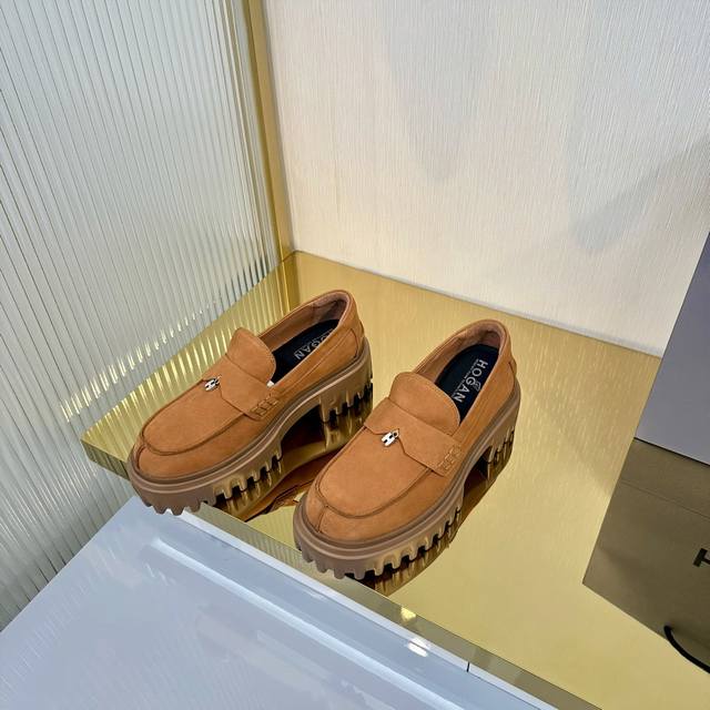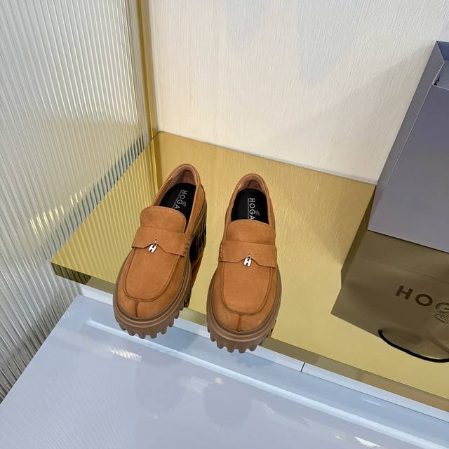 Factory Price (pp): Ddd Hogan H700 series features a distinctive platform design with a striking H logo embedded in the iconic H-Stripes sole. These preppy loafers are crafted from velvety suede, adorned with subtle horizontal stripes and an H letter charm. Lightweight yet stylish, they offer urban chic. The memory foam insole provides lightweight comfort and effortlessly elegant style. Sizes 34-40. Reposting this image will definitely boost sales! DDD