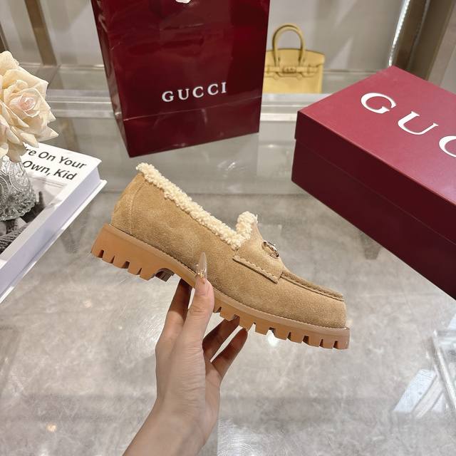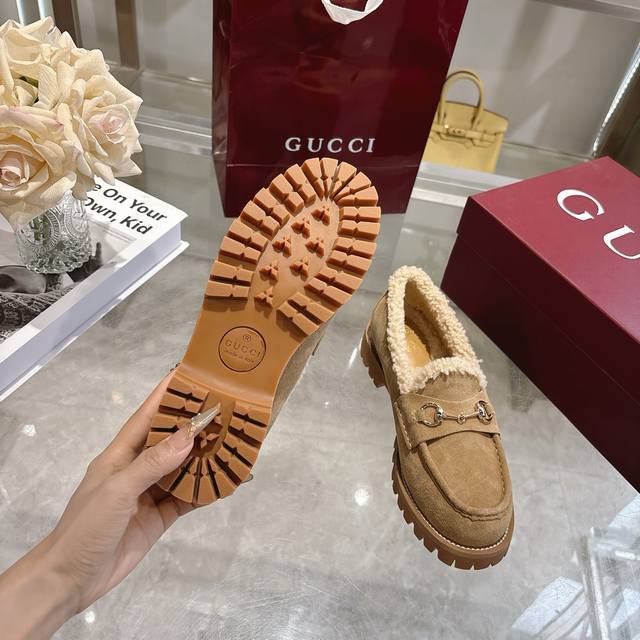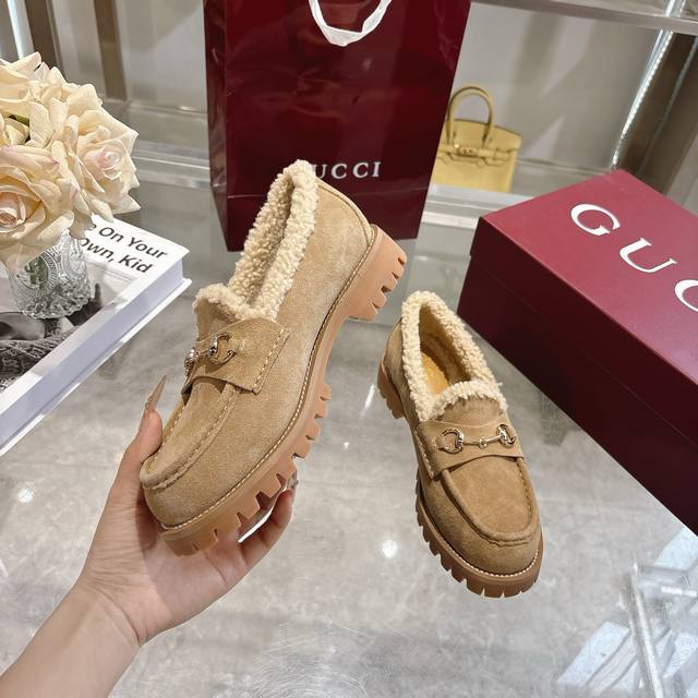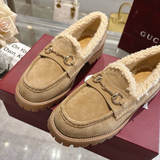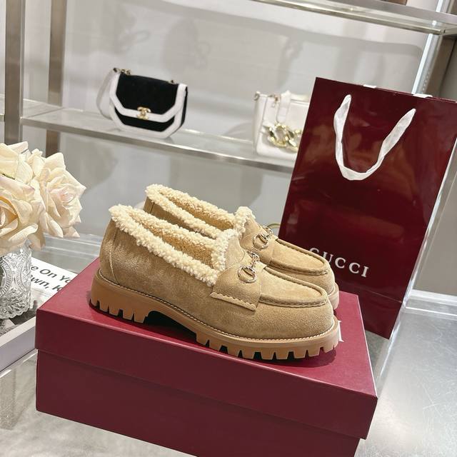 Factory Price (pp): DDD New Winter Women's Horsebit Loafers with Wool Lining DDD Exquisite details infuse these loafers with elegance. Made with smooth suede and merino wool lining, they exude a refined style. The light gold horsebit adds a touch of brand identity to this classic yet modern design. DDD Black cowhide suede material DDD Light gold hardware DDD Merino wool lining DDD Horsebit DDD Rubber grooved sole DDD Flat sole DDD Height: 3 cm DDD Italian design DDD Sizes: 36-42 DDD