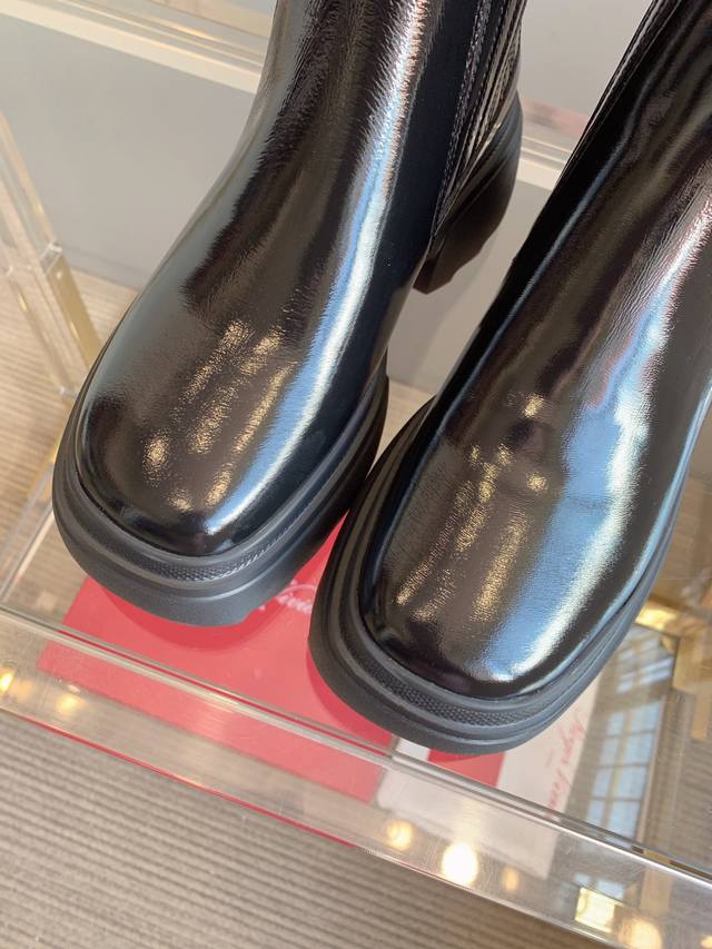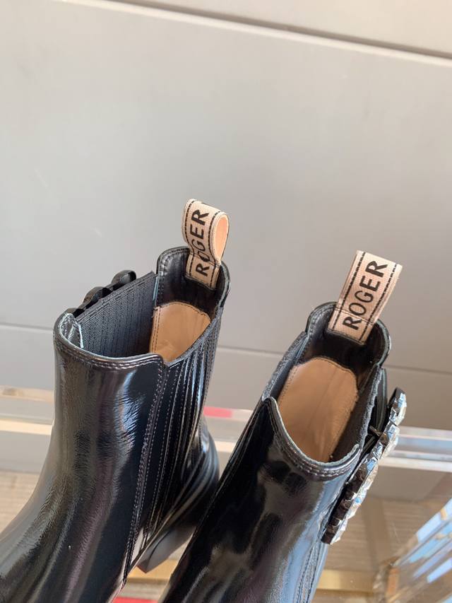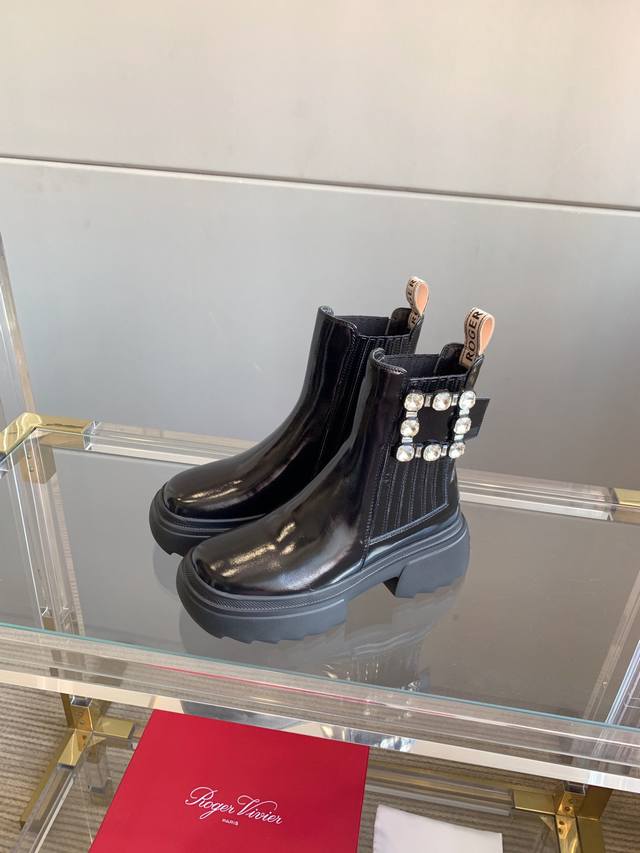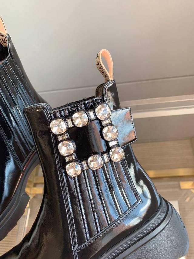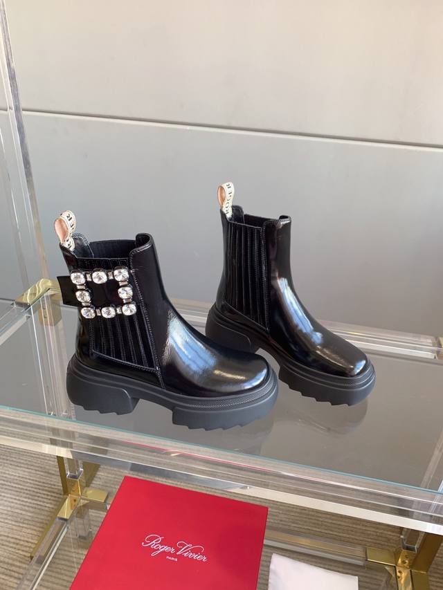 Roger Vivie* new thick-soled diamond buckle ankle boots. Cool and handsome Chelsea ankle boots easily create a bold and handsome style without losing the Vivier charm.