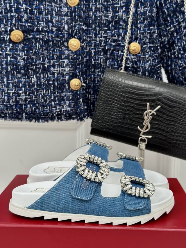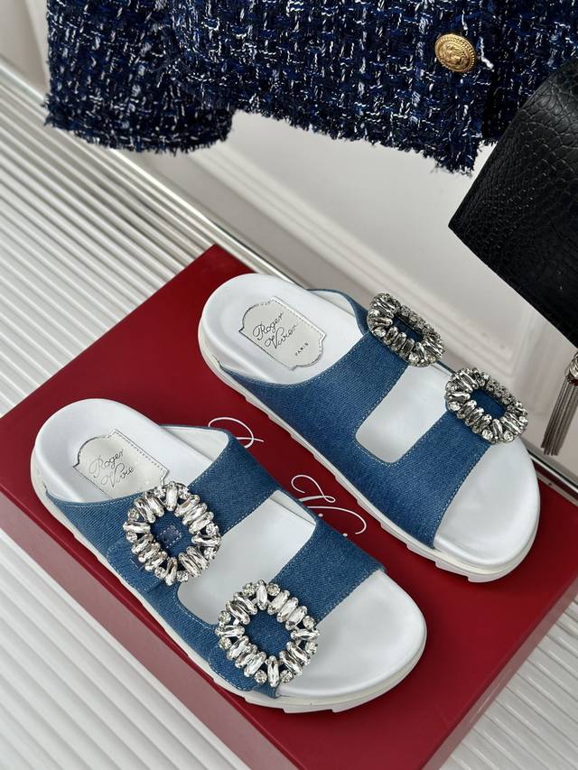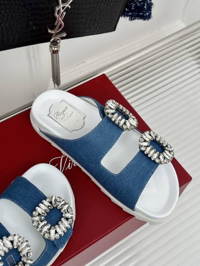 Factory Price DDD Roger Vivier RV Double Diamond Buckle Slippers DDD A pair of comfortable slippers is so important for summer DDD The unisex and chic Birkenstock style is love at first try DDD The square diamond buckle on the side is so sparkly, even my straight-male dad praised it DDD The material used in the photos is high-end and delicate silk DDD The midsole has a slight thickness, perfect for petite people DDD The upper is made of imported cowhide and rhinestone fabric DDD The lining is made of imported mixed sheepskin DDD Original mold TPU outsole DDD Size: 35-39 40 Customized DDD