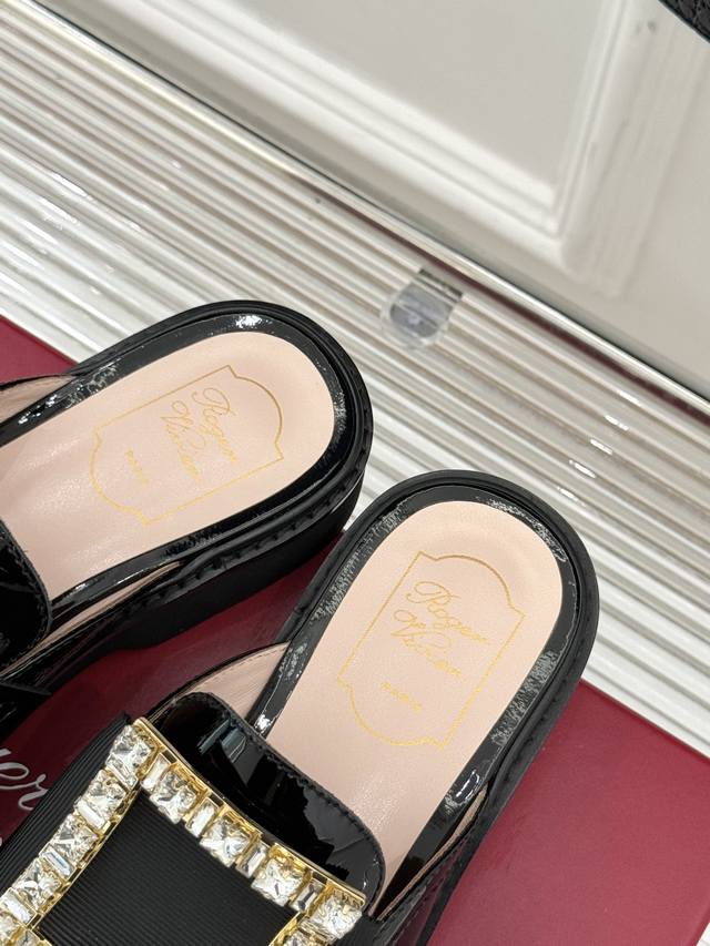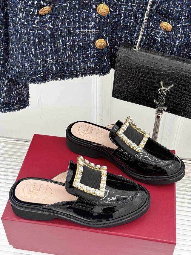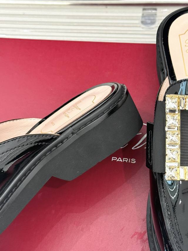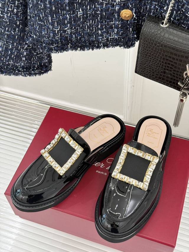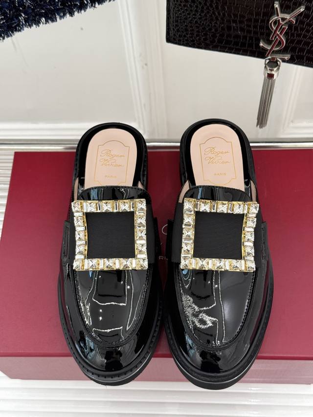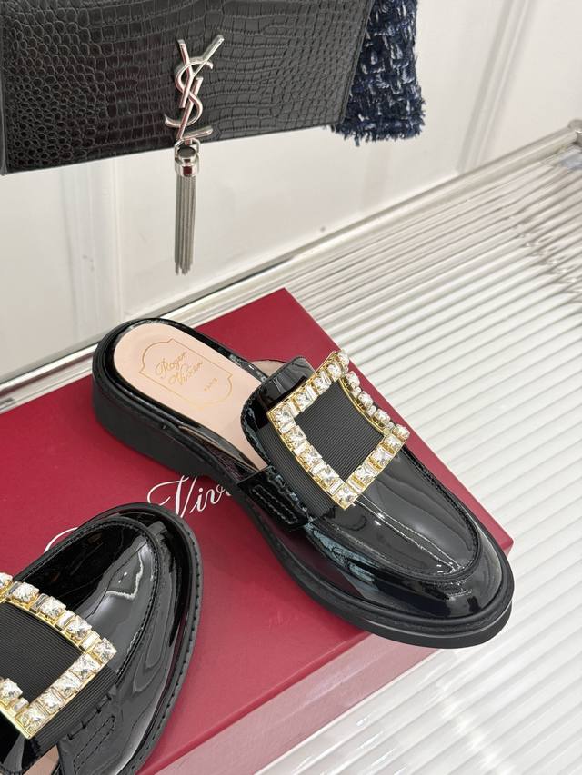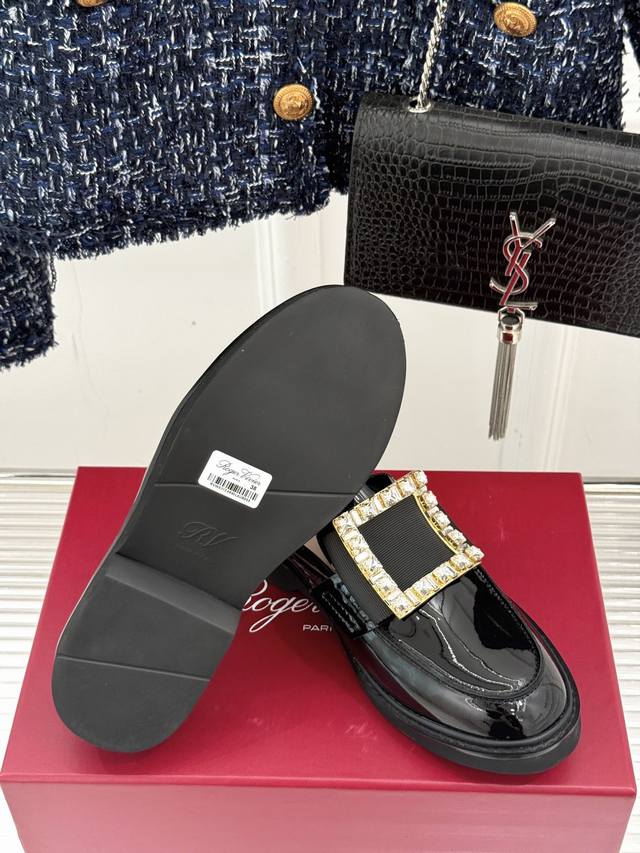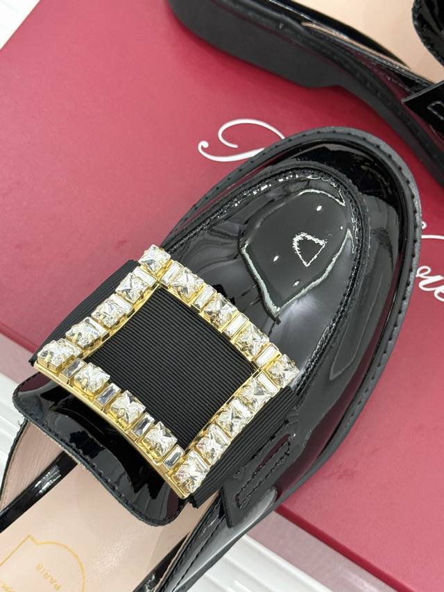 Factory Price DDD Roger Vivie*Rv Classic Square Buckle Loafers DDD Although it's a fairly common loafer style DDD, this one has a completely different aura thanks to the square buckle and crystal embellishments DDD From the shoe shape to the leather to the crystal buckle, it's impeccably perfect DDD The upper is made of original imported calfskin patent leather DDD The lining is made of mixed breathable lambskin DDD Original foamed wear-resistant outsole + genuine leather welt DDD Heel height: 2.5Cm DDD Sizes: 35-39 40 Customized DDD