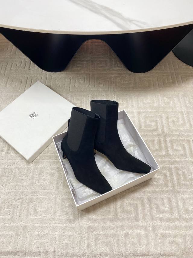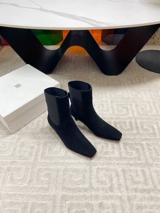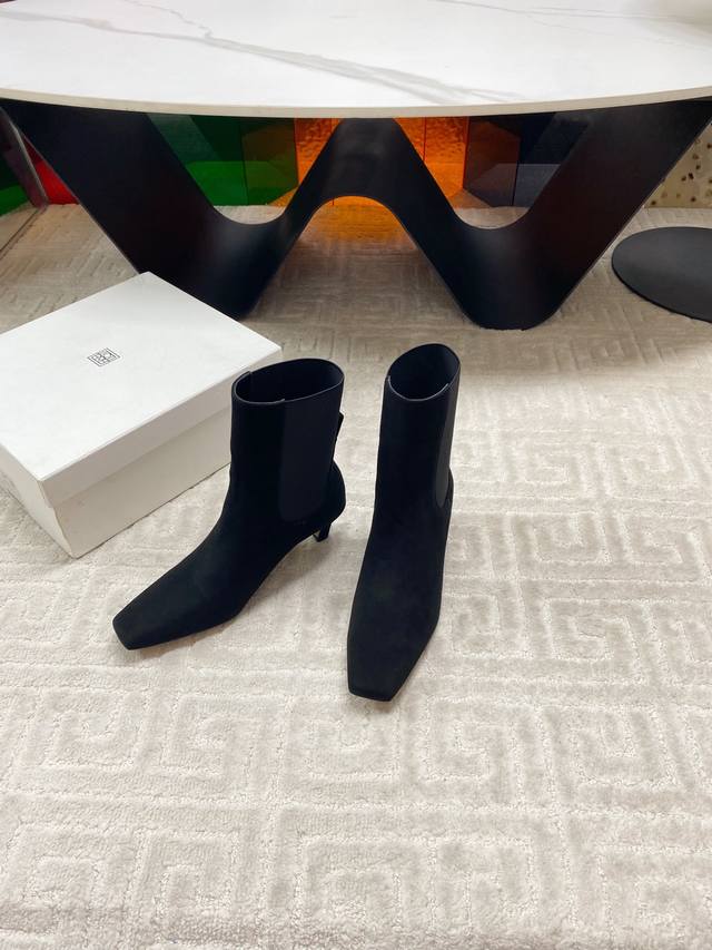 Factory stone grain, glossy Toteme autumn and winter new small boots. Toteme has never lost in creating a sense of luxury. This pair of simple, capable, low-key and fashionable boots does not have bright colors or complicated designs. The small 4.5cm heel and neat and fashionable square toe design can fully show the aura and high-end feeling.
