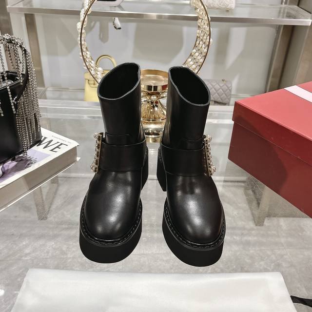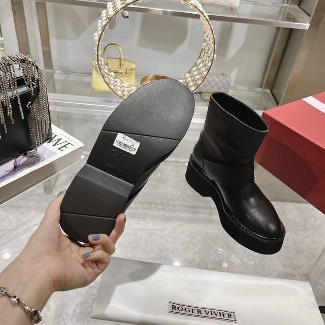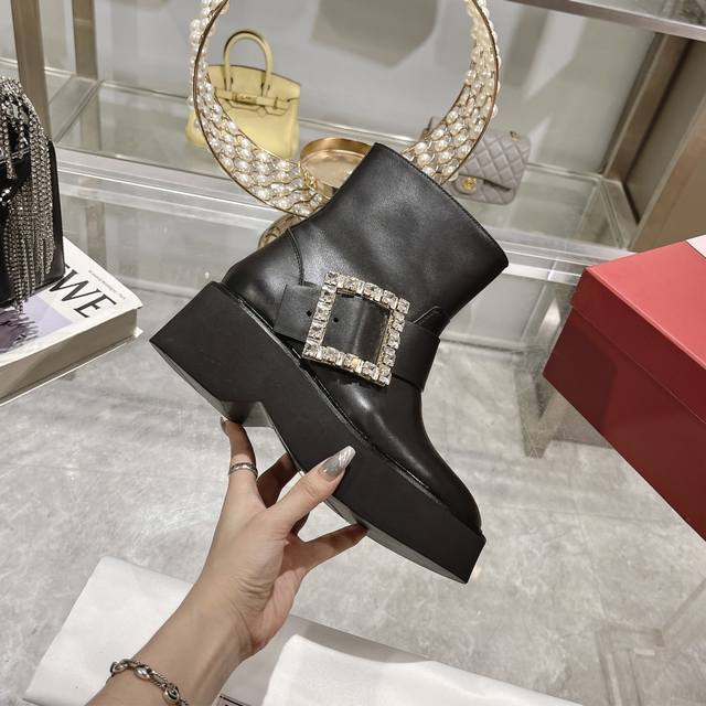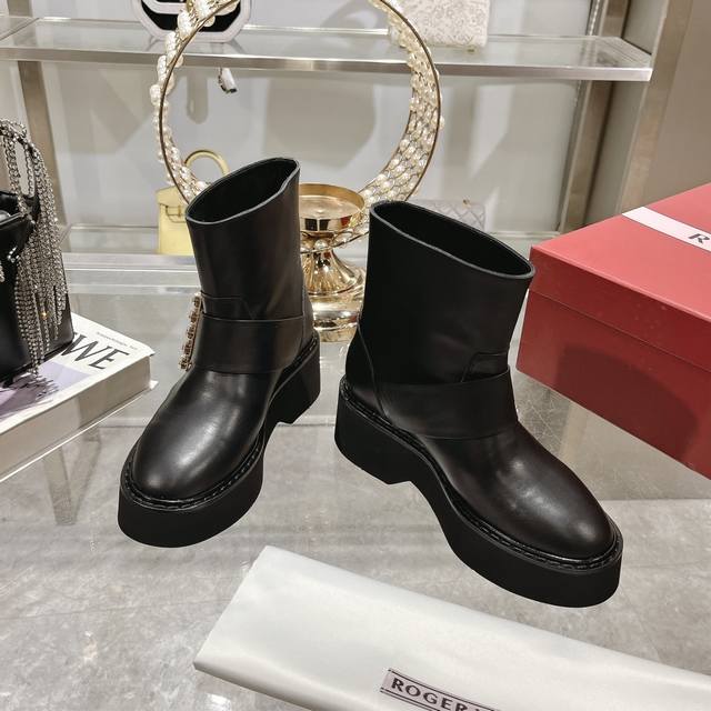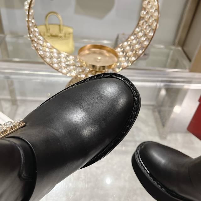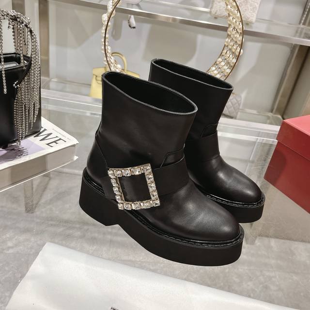 Factory top-of-the-line Roger Vivier SS Roger Vivier's new fall/winter classic diamond-buckled, cool Chelsea ankle boots effortlessly create a bold and handsome style without losing the charm of Vivier's original quality. Every year, RV's boots are a fashion staple. This season's new Vivi'Rangers diamond-buckled boots will be a new favorite in your shoe closet. Equipped with the brand's signature shimmering diamond buckle, they create a cool, girly look without losing their glamor. Whether paired with a skirt or pants, they're a must-buy for this fall/winter. Super versatile, they'll make you feel like a girl! Fabric: Imported cowhide, Open-edge beaded lining, Footrest: Custom-made sheepskin, Buckle: Swarovski, Outsole: Original molded Eva foam outsole, Sole thickness: 6.5cm, Sizes: 35-40, 40 Made to order, no returns or exchanges.