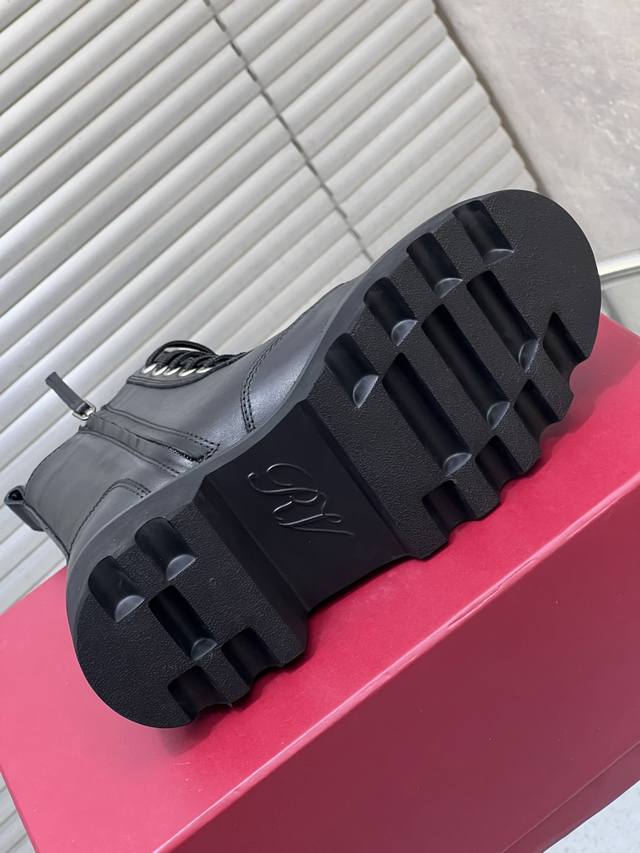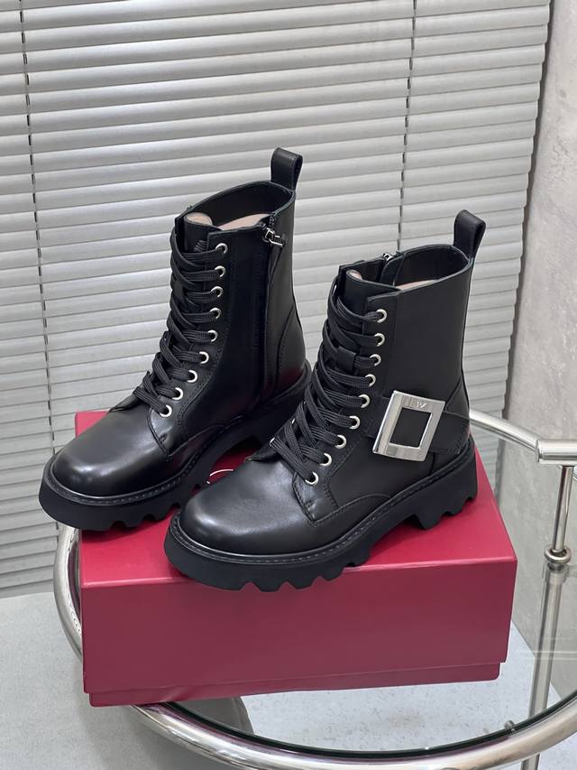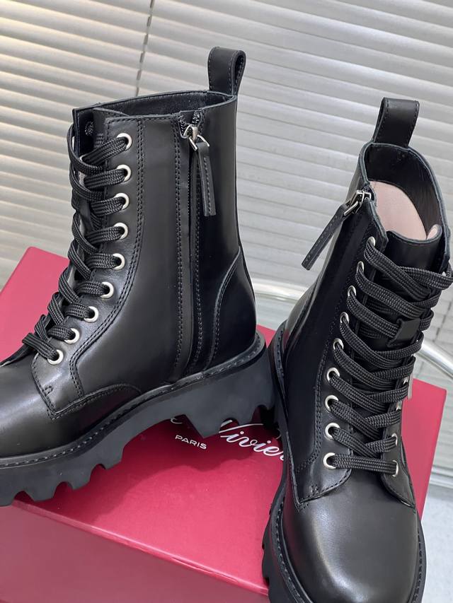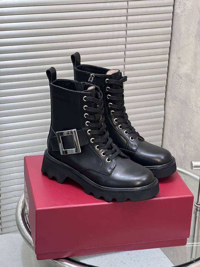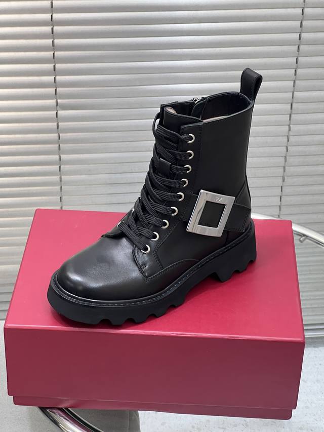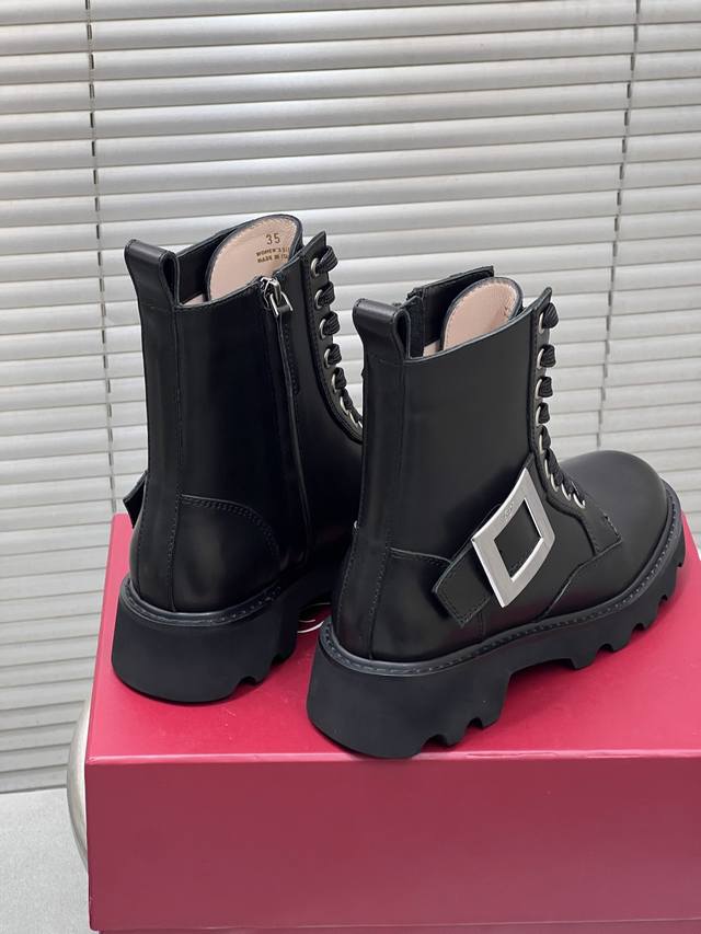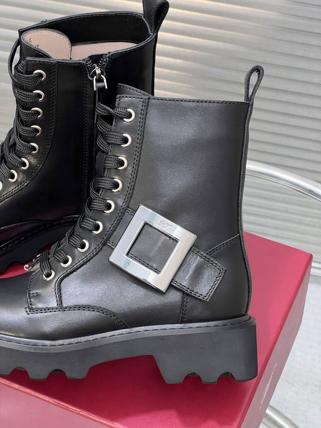 Roger Vivier RV's new square-buckle lace-up Martin boots. Highest-quality version, perfect 1:1 replica. Original mold, rubber sole, and original last. The shoe shape is generous and can be easily matched with various styles. A blessing for short legs, instantly transforming into long legs.